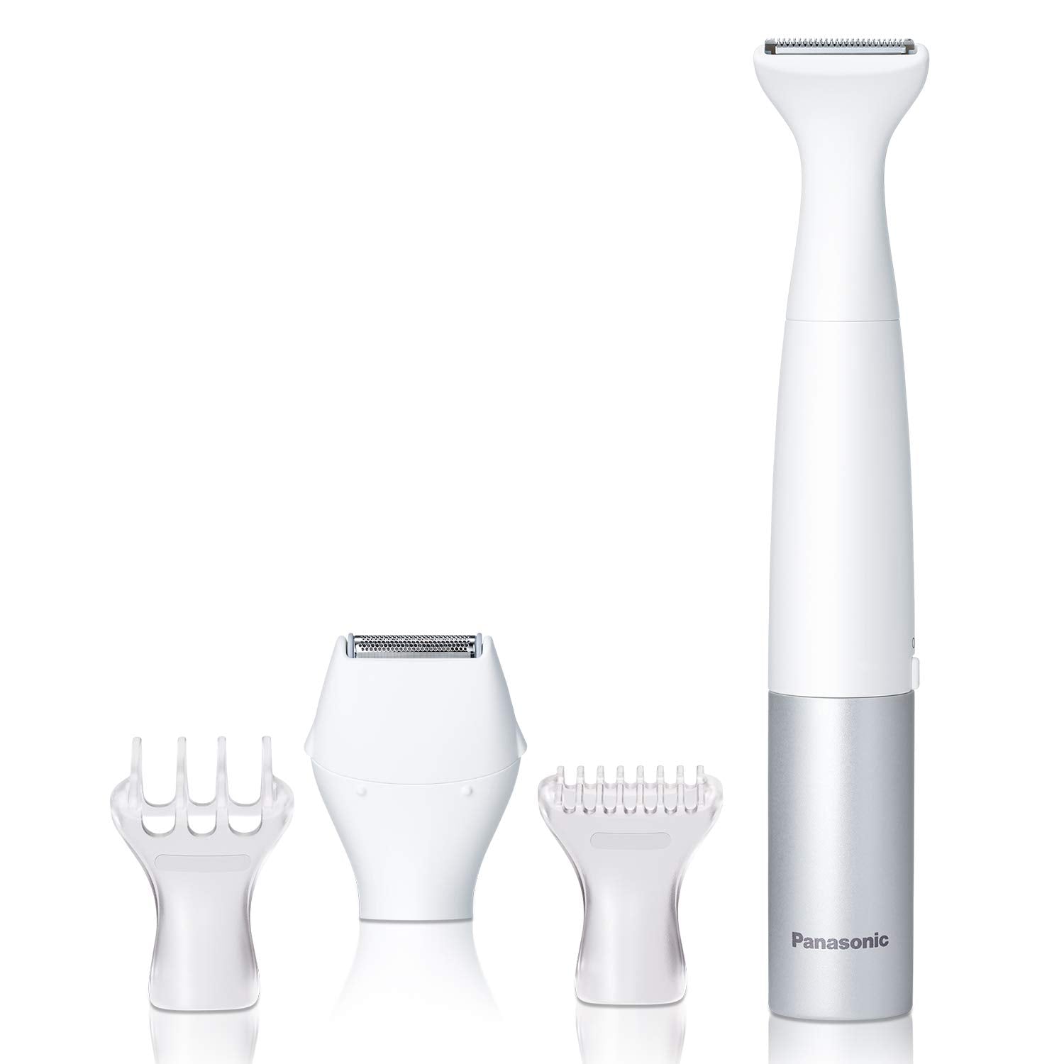 Panasonic Bikini Trimmer and Shaver for Women with 4 Attachments for Gentle Grooming in Sensitive Areas, Wet/Dry, Battery-Operated – ES-WV60-S (White / Silver)