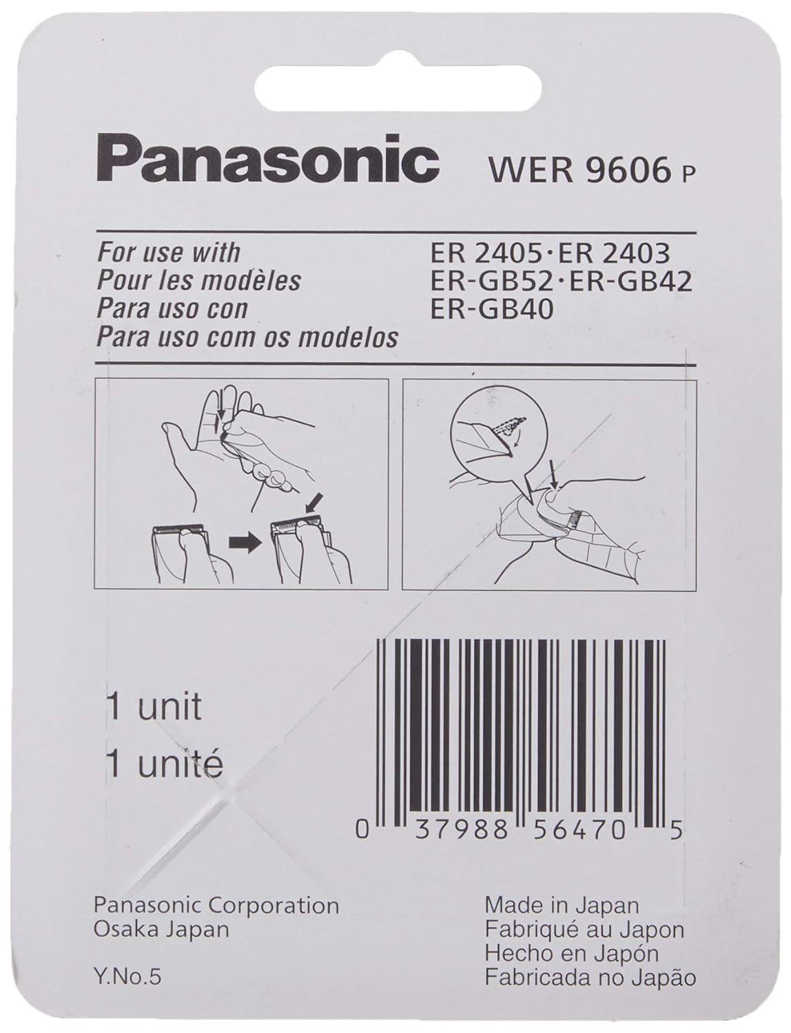 Compatible with the Panasonic Men’s Trimmers: ER-GB42-K, ER-GB40-SReplace Blade for Optimal Trimming Performance: Over time, the blade on your trimmer will become dulled and pitted causing discomfort. Replacing blades every 3 years ensures a smooth comfortable trim whenever you use your Panasonic TrimmerA Consistently Clean, Comfortable Trim: This durable, ultra-sharp men’s trimmer blade has been honed to an acute 45-degree edge to cut through even thick, dense beards with easeQuality Craftsmanship: Forged in Japan from premium, hypoallergenic stainless steelInstall in Seconds: Panasonic replacement blades are designed and assembled to custom fit your trimmer model. Simply remove the worn blade and snap the new one right into placePanasonic Replacement Trimmer Blade (WER9606P) keeps your Panasonic Men’s Trimmer performing its best, for a clean, comfortable trim every time. Over time, your trimmer's blades can become dulled and pitted, creating skin discomfort and a less than satisfying trimming experience. In order to help maintain the level of precision and comfort you demand from your trimmer, the high-performance blades should be replaced once every three years with a genuine, easy-to-install Panasonic replacement blade. Installation is easy, as parts are designed and assembled to custom fit your trimmer model. Simply remove the worn blade and snap the new one into place. This genuine Panasonic ultra-sharp blade is made from premium Japanese stainless steel. Each blade reflects the centuries-old traditions of skill and expertise in crafting the high-quality steels once used to create Japan's legendary swords. Genuine Panasonic blades are hypoallergenic, and precision-honed for a consistently clean and efficient trim. This replacement blade is compatible with Panasonic Men’s Trimmers ER-GB42-K, ER-GB40-S