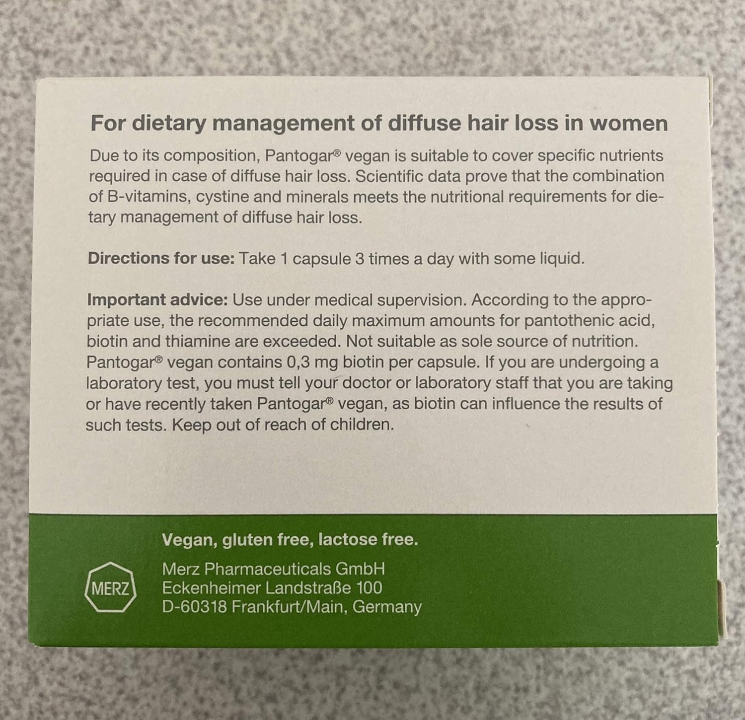 Pantogar Vegan three 90-capsule boxes, for a total of 270 capsules (3-month supply), clear capsule