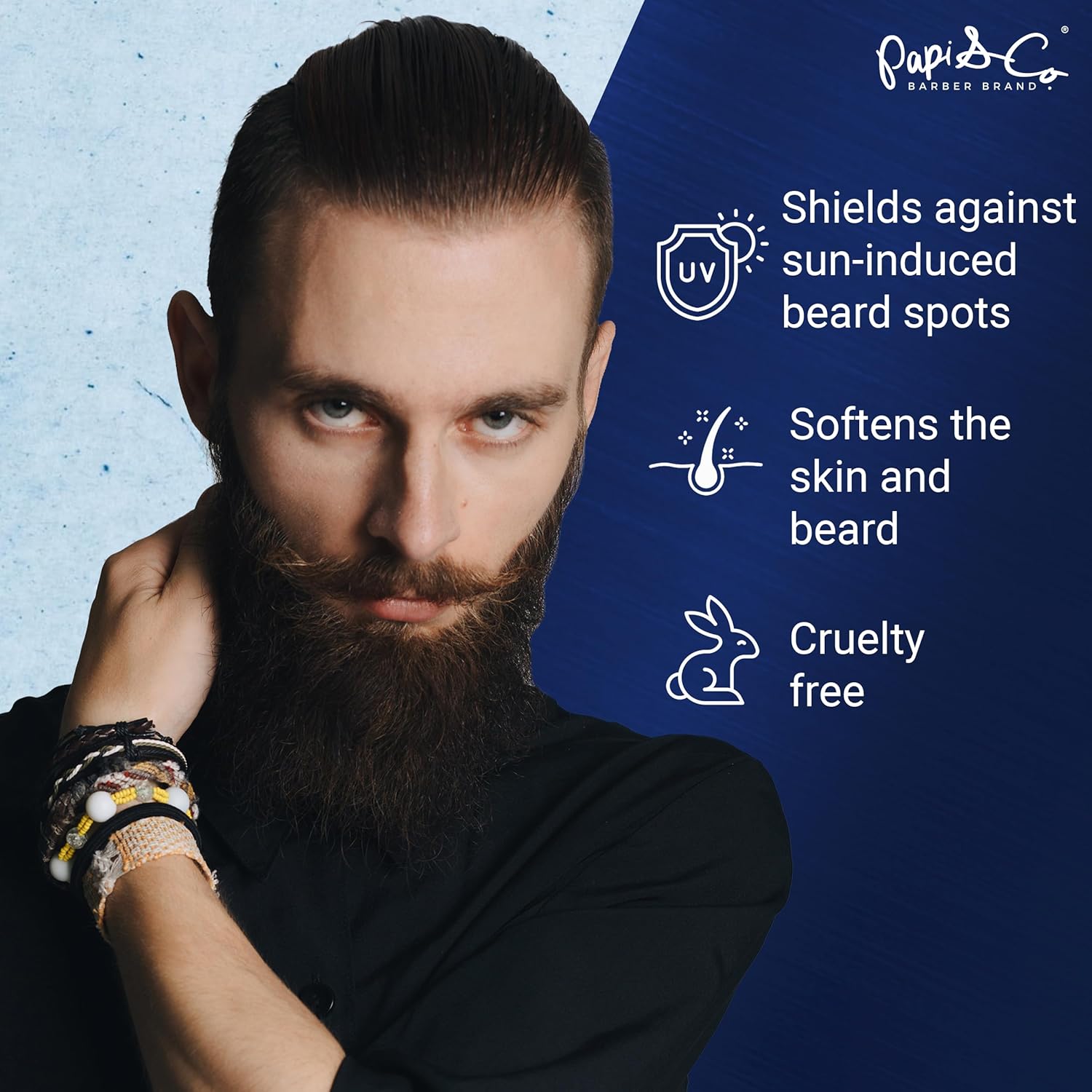 Ultimate Beard Care Solution - Condition, hydrate, and protect your beard daily with Papi & Co.’s beard softener. Infused with tea tree oil and amino acids, this beard moisturizer prevents discoloration while ensuring a manageable, natural finish with a masculine scent