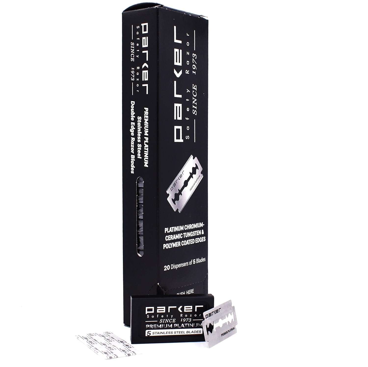 Parker 100-Count Double Edge Safety Razor Blades – Premium Platinum-Tungsten-Chromium Coated Stainless Steel For Smooth, Long-Lasting Shaves – Fits All De Razors