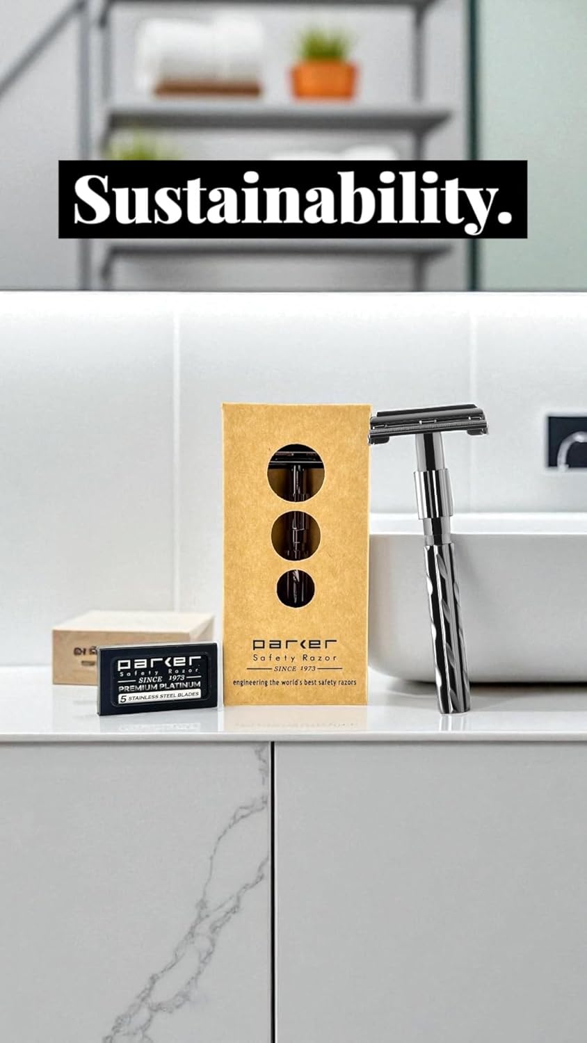 About this item ELIMINATE RAZOR BURN and INGROWN HAIRS – Parker Safety Razors are designed to eliminate shaving bumps, irritation and ingrown hairs. Parker Razors are world famous for delivering a Barber Shop Shave experience in your own home. HANDMADE with GENUINE BRASS - Every Parker Safety Razor is handmade with a Genuine Brass frame and then Electroplated for a superior finish which is both beautiful and durable WORLD FAMOUS QUALITY ENGINEERING – Parker Safety Razor has been manufacturing quality Shaving Products for over 45 years. Our Butterfly mechanism makes blade replacement simple and easy. This particular razor also has a heavily knurled handle to ensure a “sure grip” even with wet and soapy hands in the shower HEAVYWEIGHT DESIGN – The Heavyweight design of our all metal safety razor makes shaving easier. There is less pulling, tugging and blade drag as the weight of the razor does this work. Less expensive and lighter weight razors simply don’t shave like a Parker Heavyweight 5 PARKER PREMIUM PLATINUM RAZOR BLADES INCLUDED - A world razor shaves better with a world razor blade. Parker’s blades are manufactured with stainless steel from Sandvik of Sweden and coated with a proprietary platinum and polymer blend for long lasting and smooth shaves. All razor blades are not the same. See the Parker difference! See more product details,ELIMINATE RAZOR BURN and INGROWN HAIRS – Parker Safety Razors are designed to eliminate shaving bumps, irritation and ingrown hairs. Parker Razors are world famous for delivering a Barber Shop Shave experience in your own home,HANDMADE with GENUINE BRASS - Every Parker Safety Razor is handmade with a Genuine Brass frame and then Electroplated for a superior finish which is both beautiful and durable,WORLD FAMOUS QUALITY ENGINEERING – Parker Safety Razor has been manufacturing quality Shaving Products for over 45 years. Our Butterfly mechanism makes blade replacement simple and easy. This particular razor also has a heavily knurled handle to ensure a “sure grip” even with wet and soapy hands in the shower,HEAVYWEIGHT DESIGN – The Heavyweight design of our all metal safety razor makes shaving easier. There is less pulling, tugging and blade drag as the weight of the razor does this work. Less expensive and lighter weight razors simply don’t shave like a Parker Heavyweight,5 PARKER PREMIUM PLATINUM RAZOR BLADES INCLUDED - A world razor shaves better with a world razor blade. Parker’s blades are manufactured with stainless steel from Sandvik of Sweden and coated with a proprietary platinum and polymer blend for long lasting and smooth shaves. All razor blades are not the same. See the Parker difference!