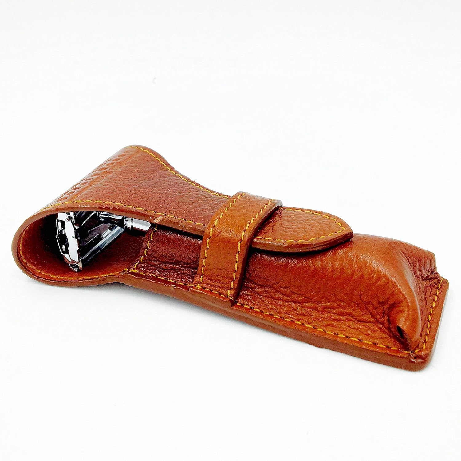For over 40 years, Parker Safety Razor has engineered the world’s finest shaving gear and classic men’s grooming accessories. We have been a leader in safety razor innovation and design, ensuring that each of our products is manufactured to the highest standards. Our strong heritage and quest to deliver exemplary products are reflected in our commitment to our customers’ satisfaction with every item that bears our name. Create an unparalleled shaving and grooming experience right in the comfort of your own home! This case is perfect for Parker, Gillette, Merkur and other double edge safety razors. Manufactured by Parker Safety Razor, this handsome brown genuine leather case will protect your investment in your razor and blades. No more cut fingers while fishing for your razor in a toiletry bag, as the case will ensure the blade is not exposed once closed. This case is designed to hold standard width short and long handle safety razors with a handle of up to approximately 4.5 inches in length. It will protect your razor while in storage or in travel....makes a great accessory when giving a DE safety razor as a gift or for your own use! Premium Shaving & Grooming Products *Razor not included **Parker Safety Razor Black Variant Adjustable Razor sold separately** **Other products sold separately,Premium Leather Protection - Crafted from genuine leather with a soft interior lining, this travel case keeps your razor snug and scratch-free. Ideal for carrying high-end DE razors like the Parker 29L and other long-handle women's models,Designed for All Safety Razors - Engineered to fit Standard & Long-handle safety razors tjhose for Merkur, Parker, Edwin Jagger, Gillette and more. . Offers a perfect snug fit for models with butterfly and 3 piece heads,Secure & Compact Design - Features a zip-around closure to keep your razor safe and compact during travel. Slim, lightweight, and easy to slip into toiletry bags or suitcases without risk of damage,Elegant & Durable Craftmanship - Clean stitching, polished hardware, and richly textured leather give this case a stylish look while ensuring long-lasting durability. A refined accessory for any grooming routine,Ideal Gift for DE Shavers - A thoughtful and practical gift for wet-shaving enthusiasts. Pairs perfectly with a Parker 29L or blades to create a complete, elegant shaving set
