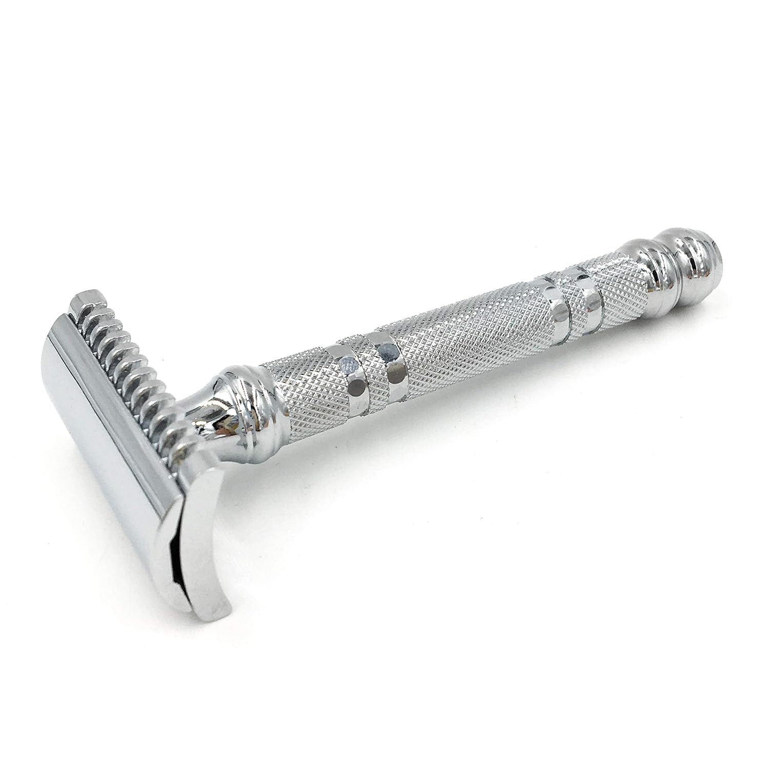 Parker Open Comb Double Edge Safety Razor – Heavyweight Chrome Handle For Closer Shaves – Includes 5 Razor Blades – Ideal For Men With Thick Or Coarse Beards (24C-Chrome)