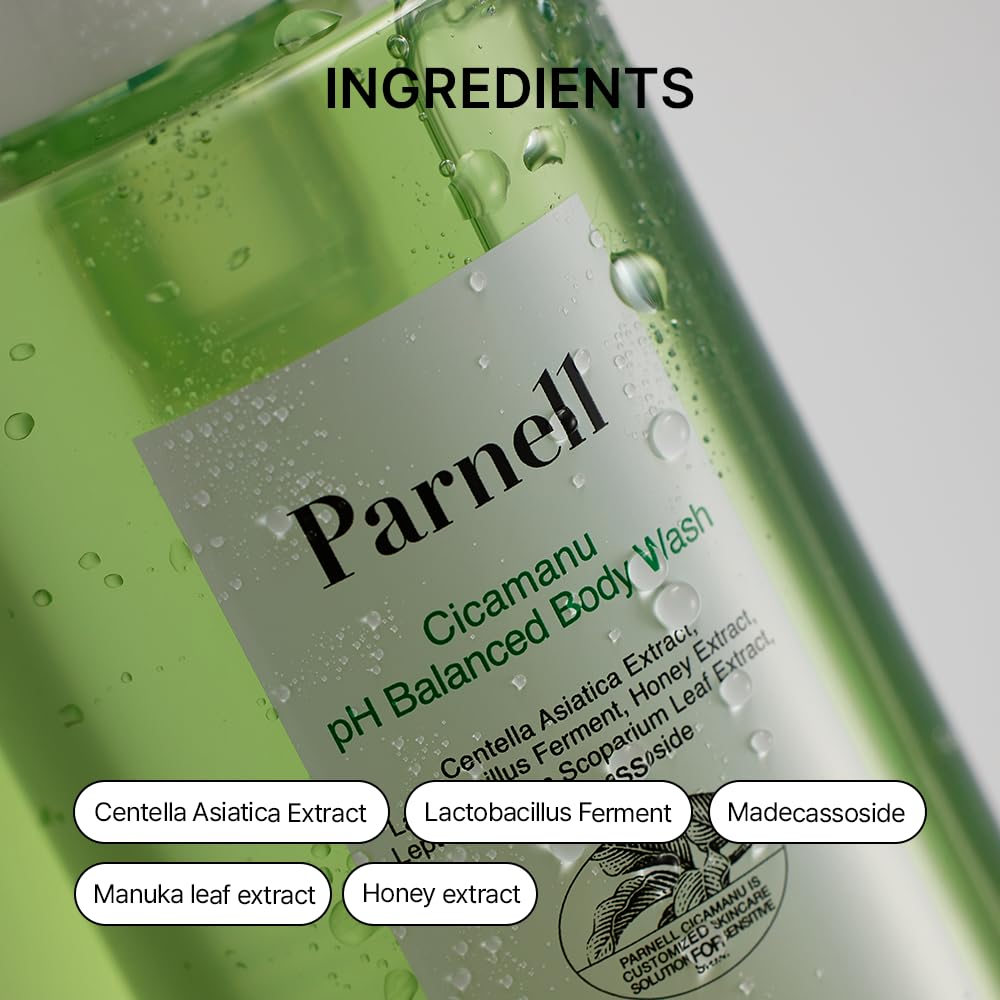 Parnell Cicamanu Ph Balanced Body Wash - Centella Asiatica, Salicylic Acid, Ceramide, Mild Cleansing And Soothing For Sensitive, Troubled And Acne-Prone Body Skin And Back Acne (13.5 Fl Oz / 400Ml)