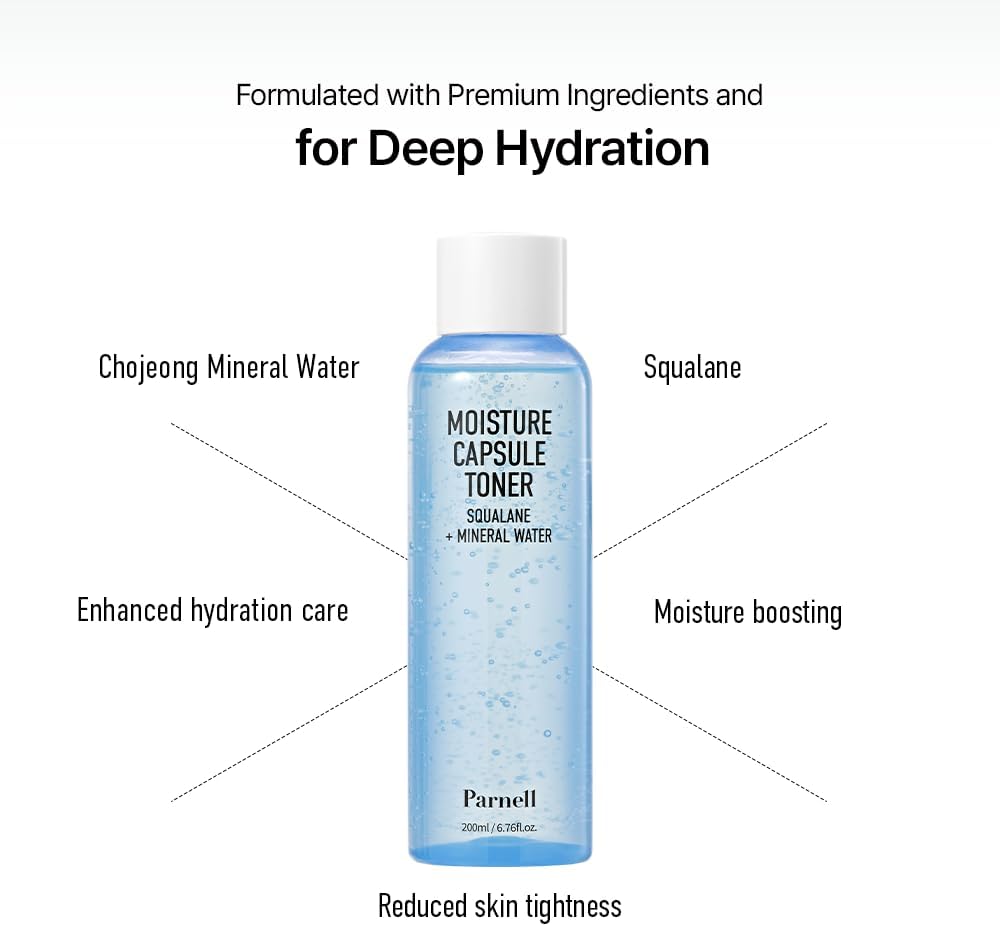 Parnell Squalane Mineral Water Moisture Capsule Toner 200Ml / 6.76 Fl.Oz. | Hydrating Toner For Face, Skin Barrier Toner, Korean Skin Care, Korean Beauty