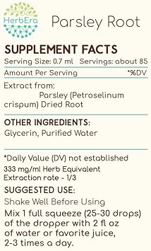 Parsley Root B60 Alcohol-Free Herbal Extract Tincture, Concentrated Liquid Drops Natural Parsley (Petroselinum Crispum) Dried Leaf (2 Fl Oz)