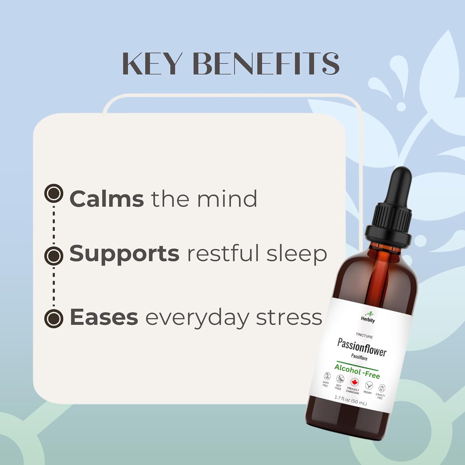 Passionflower Tincture – Alcohol-Free Herbal Extract For Calm, Mood & Sleep Support – Glycerin-Based, Vegan & No Added Sugar-Free Supplement – 1.7 Fl Oz (50 Ml)