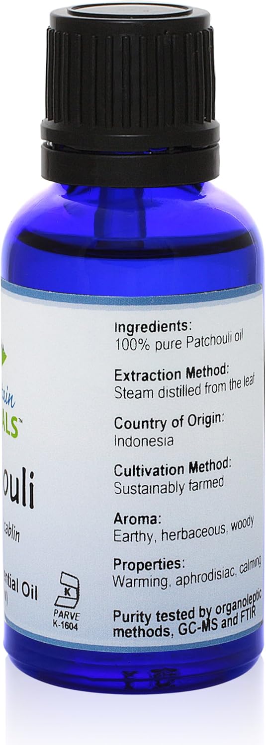 Pure & Natural Patchouli Essential Oil: Extracted From Leaves Using The Preferred Steam Distillation Method. There Are No Additives, No Fillers, Nothing To Dilute The 100% Pure Living Oil To Help Deliver Maximum Benefits From Each 1 Fl. Oz. (30 Ml) Glass Bottle