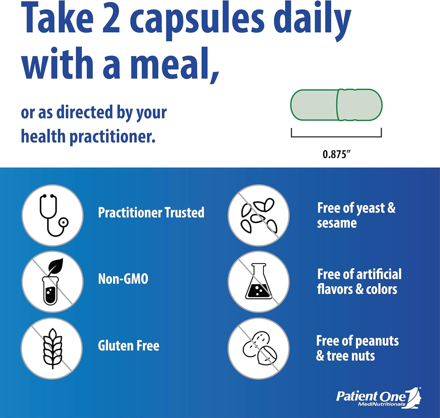About Patient One: As a leading healthcare professional brand, Patient One is trusted by thousands of practitioners for our premium quality supplements. Our research-driven formulas are made with high quality raw ingredients, manufactured in an NSF-certified, GMP facility to stringent quality standards, and rigorously tested at all stages
