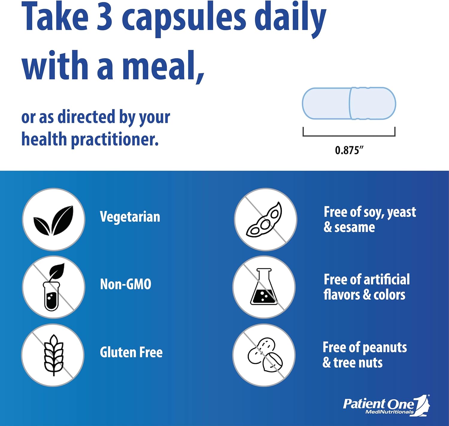 About Patient One: As a leading healthcare professional brand, Patient One is trusted by thousands of practitioners for our premium quality supplements. Our research-driven formulas are made with high quality raw ingredients, manufactured in an NSF-certified, GMP facility to stringent quality standards, and rigorously tested at all stages