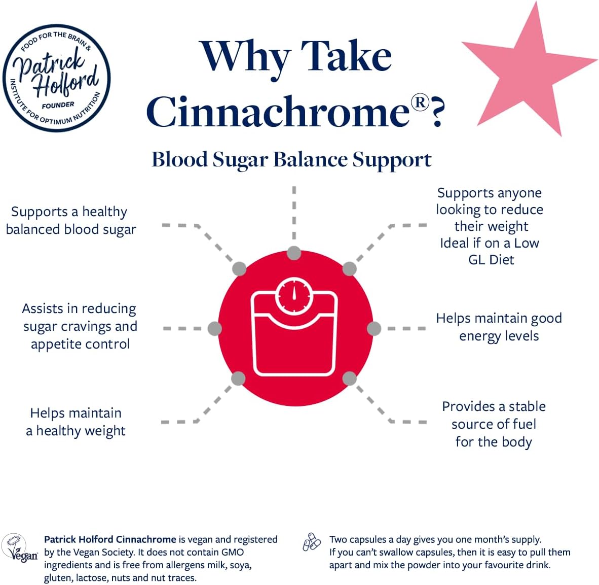 Patrick Holford Cinnachrome/Blood Sugar Balance Supplement/For Weight Management Support/Cinnamon 3000Mg, Chromium 405Ug, Niacin/Naturally Sourced / 60 Capsules/Vegan/For Women & Men