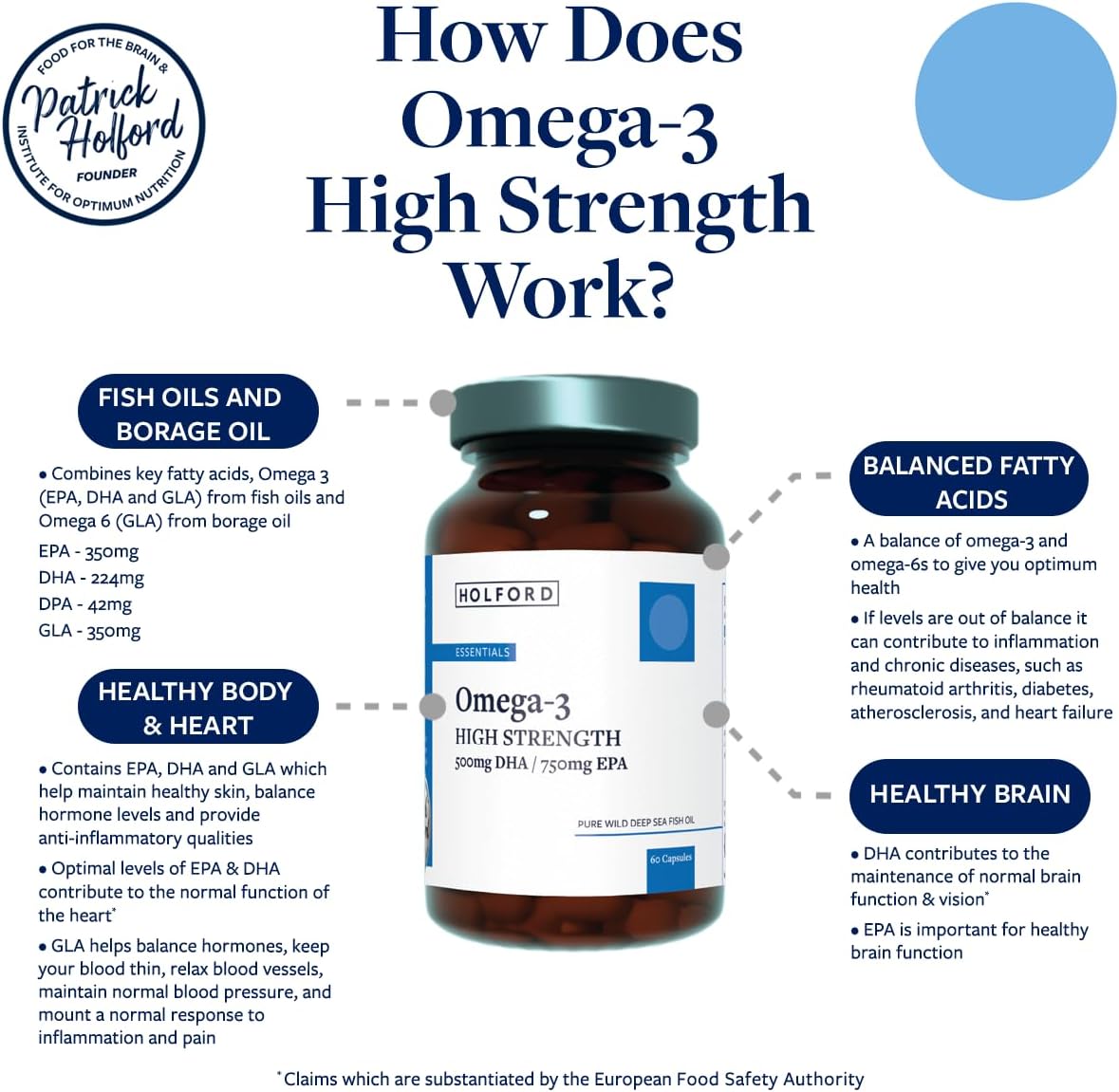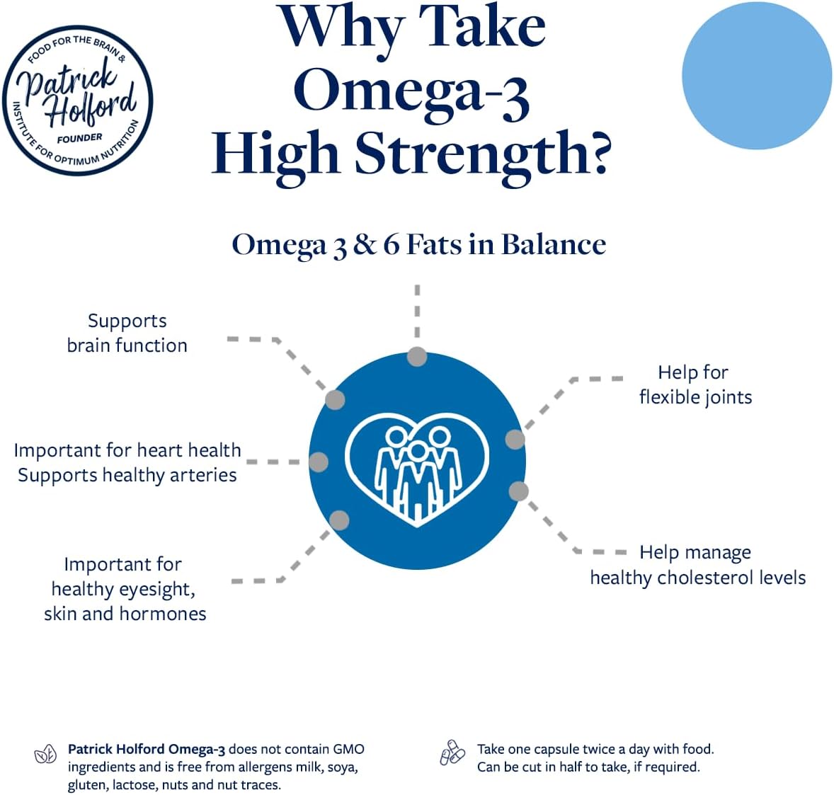 Patrick Holford Essential Omegas/Omega-3 & 6 Supplement/For Heart, Brain & Vision Support / 4 Nutrients/Epa 350Mg, Dha 224Mg, Dpa 42Mg, Gla 50Mg / 120 Capsules/For Women & Men