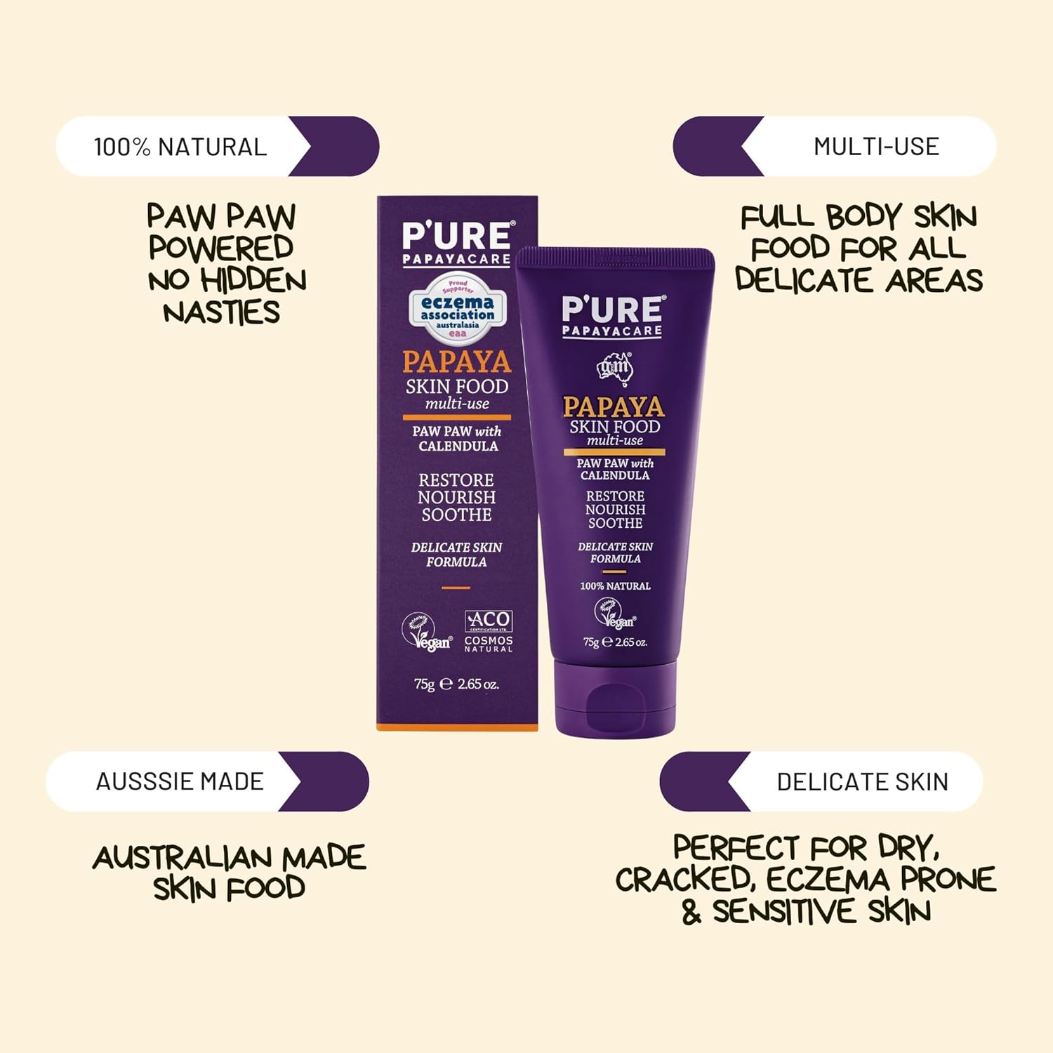 Paw Paw Skin Food 75G - P'Ure Papayacare Face And Body Organic Lotion For Dry Skin | 100% Natural Cream And Lotion Treatment For Eczema & Repair Dry Skin With Shea Butter & Calendula