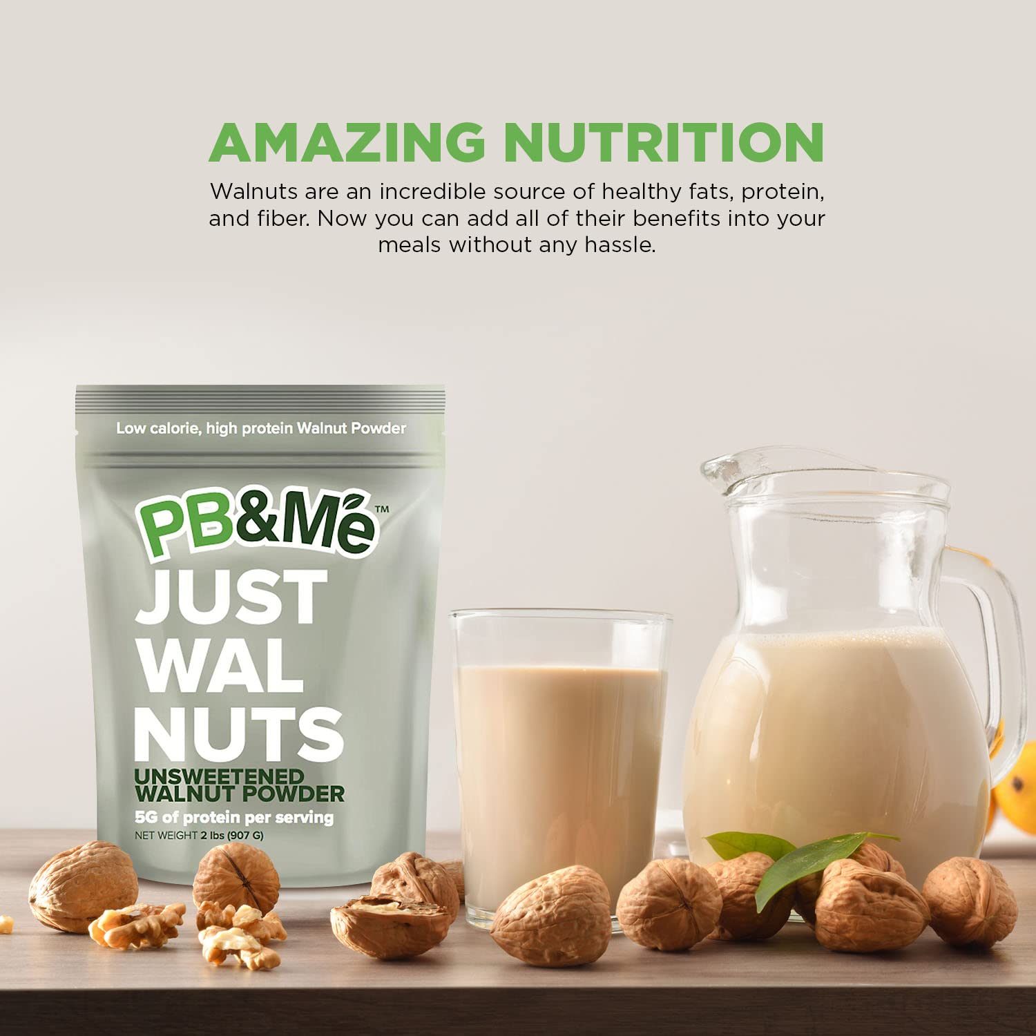 Pb&Me Just Nuts Powdered Walnut Butter - Gluten Free Keto Food, Vegan, Low Fat Protein Source, No Sugar Added - Emergency Food, Nut Butter Bulk Food, High Protein Snacks - Bulk Size 2 Lbs