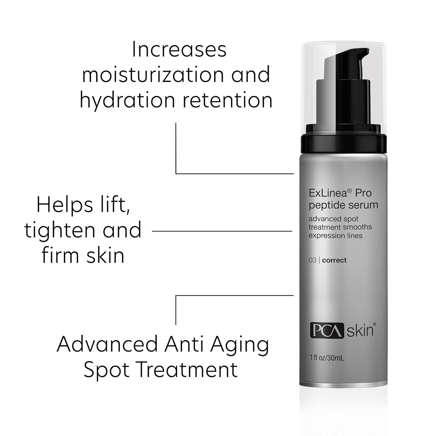 Pca Skin Exlinea Pro Peptide Serum For Face, Peptide Complex Serum, Helps Lift, Tighten, And Firm Skin And Reduces Wrinkle Depths, Hydrating Anti Aging Serum For Women, 1.0 Oz Pump