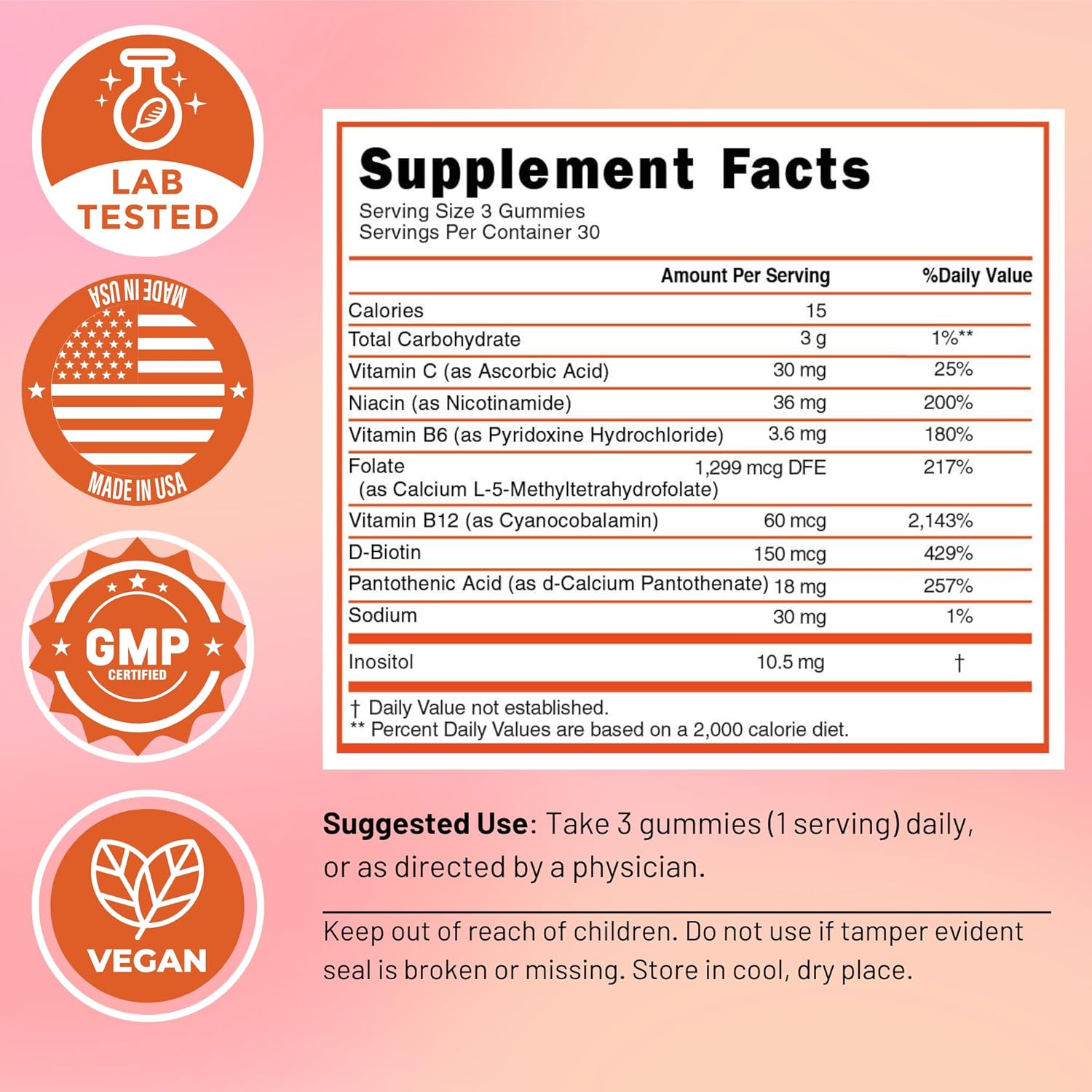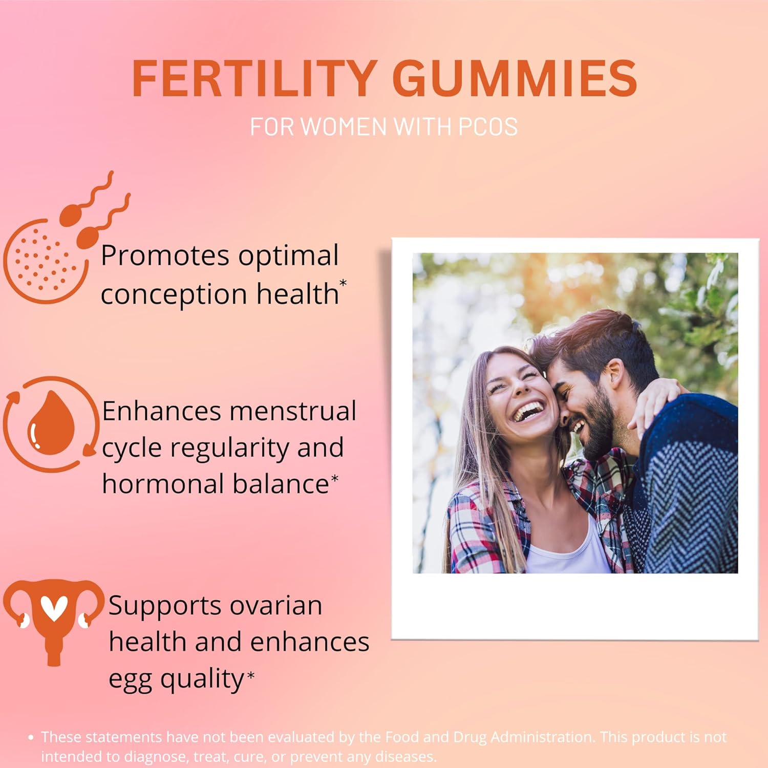 Pcos Herbal Prenatal Fertility Gummies With Inositol, Folic Acid, Vitamin B Complex. Supports Conception, Hormone Balance, Ovulation For Women, Strawberry Flavor, 90 Count