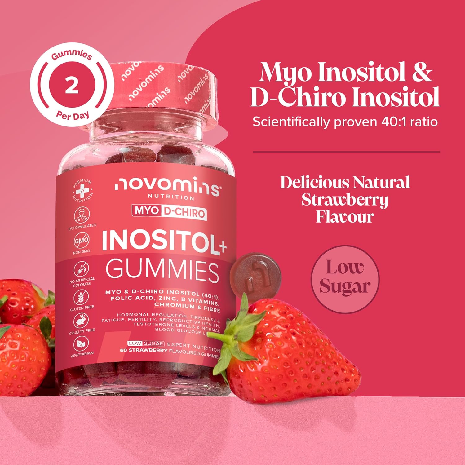 Pcos Supplement Gummies - Inositol+ Myo Inositol Inositol Folic Acid Zinc Vitamin B12 B6 Chromium - Hormone Balance For Women - Alternative To Inositol Tablets - 60 Inositol Gummies - Novomins