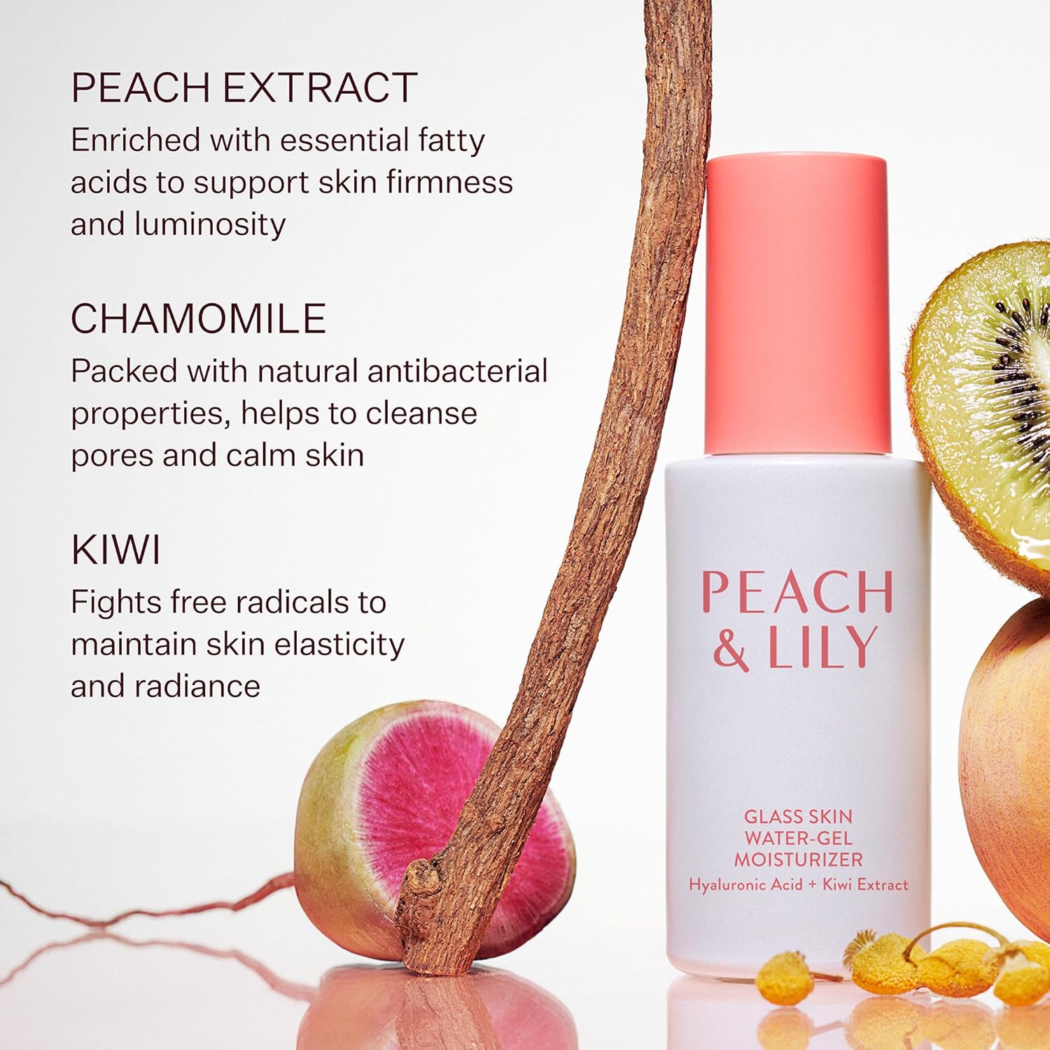 About this item The perfect end to your skincare routine, our NEW Glass Skin Water-Gel Moisturizer provides instant and long-lasting hydration for a Glass Skin glow. This breakthrough formula delivers a proprietary vegan prebiotic and probiotic complex that strengthens your skin’s unique microbiome – the environment in which your skin functions – to strengthen skin and curb breakouts. he result Visibly brighter, calmer, more hydrated skin with a healthy, glass skin glow. 100% Worry Free: Peach & Lily formulas are clean, non-toxic, alcohol-free, fragrance-free, vegan, gluten-free and cruelty-free. Leaping Bunny certified. See more product details,The perfect end to your skincare routine, our NEW Glass Skin Water-Gel Moisturizer provides instant and long-lasting hydration for a Glass Skin glow,This breakthrough formula delivers a proprietary vegan prebiotic and probiotic complex that strengthens your skin’s unique microbiome – the environment in which your skin functions – to strengthen skin and curb breakouts,he result Visibly brighter, calmer, more hydrated skin with a healthy, glass skin glow,100% Worry Free: Peach & Lily formulas are clean, non-toxic, alcohol-free, fragrance-free, vegan, gluten-free and cruelty-free. Leaping Bunny certified