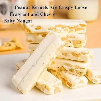 Product description Peanut Salty Nougat Ideal for Snack Cupboard, Weddings, Valentines, Party Bag fillers Our sweet and salty nougat candy easy to travel and carry, suitable for quick desserts in office candy trays that everyone will love, Suitable for your office candy, party candy, or friend's candy snacks. Product Name: Peanut Salty Nougat, Soft Brittle Nougat, Sweet and Salty Nougat Candy, Handmade Candies, Soft and Chewy, Individual Packing, Ideal for Snack Cupboard, Weddings, Valentines Net Content: 15g / bags Shelf life: 300 days (the date on the packaging is the production date of the product). Storage method: Store in a cool, dry and ventilated place away from direct sunlight. Whether enjoyed as a snack or a casual treat, handmade candies are the best choice. They are perfect for sharing with friends and also serve as a convenient snack option, whether you're at the office or enjoying outdoor activities. Ingredients Peanuts,etc P.when('A').execute(function(A) { A.on('a:expander:toggle_description:toggle:collapse', function(data) { window.scroll(0, data.expander.$expander[0].offsetTop-100); }); }); Directions Consume directly from the individual packaging. Store in a cool, dry and ventilated place away from direct sunlight. See more,Peanut Salty Nougat Ideal for Snack Cupboard, Weddings, Valentines, Party Bag fillers,Our sweet and salty nougat candy easy to travel and carry, suitable for quick desserts in office candy trays that everyone will love, Suitable for your office candy, party candy, or friend's candy snacks,Product Name: Peanut Salty Nougat, Soft Brittle Nougat, Sweet and Salty Nougat Candy, Handmade Candies, Soft and Chewy, Individual Packing, Ideal for Snack Cupboard, Weddings, Valentines,Net Content: 15g / bags,Shelf life: 300 days (the date on the packaging is the production date of the product),Storage method: Store in a cool, dry and ventilated place away from direct sunlight,Whether enjoyed as a snack or a casual treat, handmade candies are the best choice. They are perfect for sharing with friends and also serve as a convenient snack option, whether you're at the office or enjoying outdoor activities