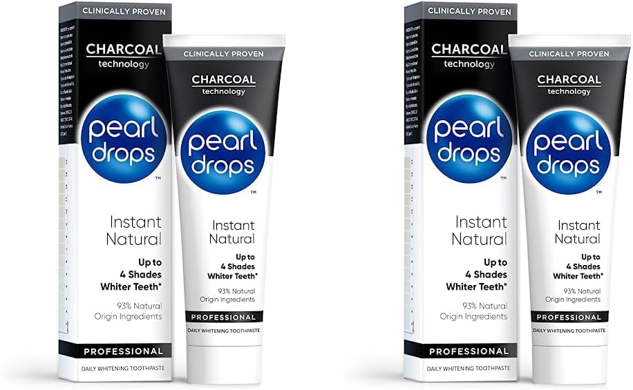 Product Description Pearl Drops - Instant Natural Professional Daily Toothpaste with Charcoal - Up to 4 Shades White - (75ml) (Pack of 2) : The information below applies to each unit in the pack . The unique blend of polishing agents in the 4D whitening system accelerates whiteness and helps lift stains and plaque . Pro-Shine complex and gentle pink dye gives an instant optical whitening effect and gloss, perfect for a finishing touch . Essential fluoride strengthens enamel and protects against tooth decay . Recommended to cover wider areas of thinning, scalp show-through and even bald spots . Brush 3 times daily for 1 week Ingredients Hydrogenated Starch Hydrolysate, Aqua, Hydrated Silica, Glycerin, Alumina, Sodium Dodecylbenzenesulfonate, Peg-12, Aroma, Charcoal Powder, Pentasodium Triphosphate, Pentapotassium Triphosphate, Cellulose Gum, Sodium Fluoride, Sodium Saccharin, Ammonium Hydroxide, Maltodextrin, Limonene, Ci 42090, Ci 45430, Ci 75470, Ci 77491, Contains: Sodium Fluoride (1300 Ppm F) P.when('A').execute(function(A) { A.on('a:expander:toggle_description:toggle:collapse', function(data) { window.scroll(0, data.expander.$expander[0].offsetTop-100); }); }); Safety Warning Not suitable for children under 7. The purple colour from the paste may have temporary staining effect on hands and mouth. Suitable for natural teeth only. See more,The information below applies to each unit in the pack,The unique blend of polishing agents in the 4D whitening system accelerates whiteness and helps lift stains and plaque,Pro-Shine complex and gentle pink dye gives an instant optical whitening effect and gloss, perfect for a finishing touch,Essential fluoride strengthens enamel and protects against tooth decay,Recommended to cover wider areas of thinning, scalp show-through and even bald spots,Brush 3 times daily for 1 week