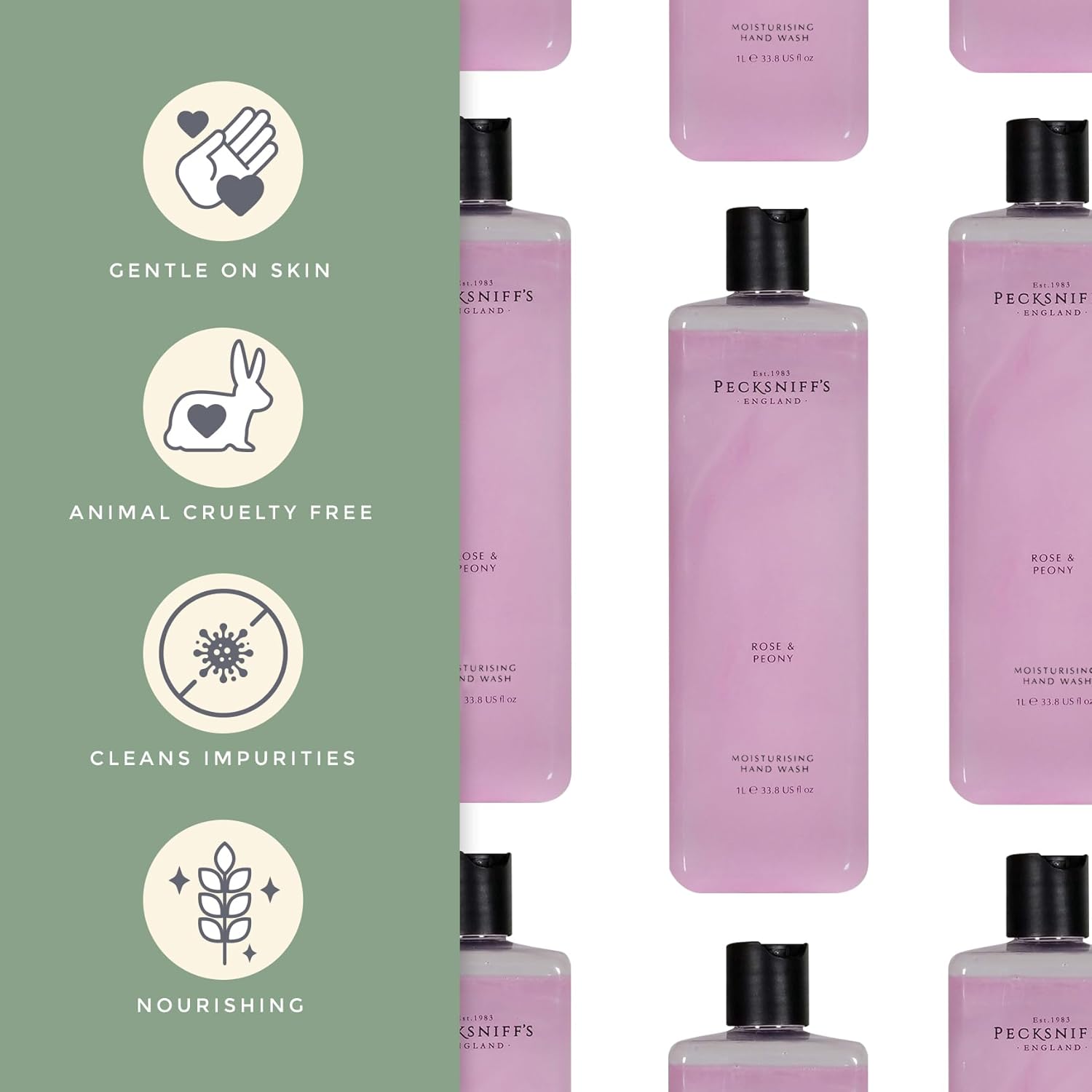 Pecksniff'S Moisturizing Hand Wash Refill, 1000 Ml/33.8 Fl Oz - Gentle And Luxuriously Fragranced, Spa-Like Experience In A Bottle (Rose & Peony)