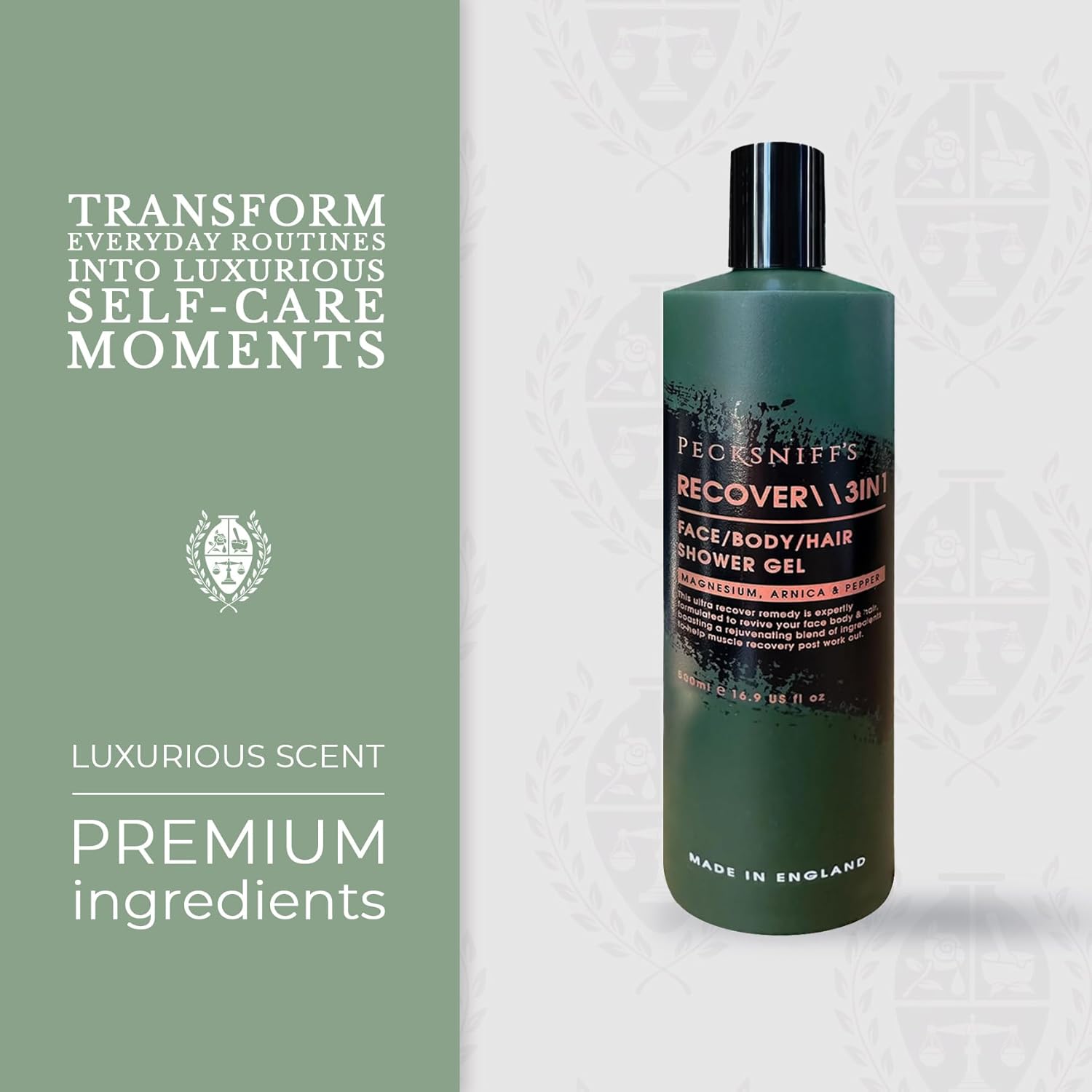About this item Indulge in Luxury: Experience the spa-like indulgence of Pecksniff's Shower Gel, transforming your daily shower into a luxurious escape that leaves your skin feeling rejuvenated and deeply nourished. Energize Your Senses: Let the subtle, invigorating scent of Arnica and Pepper uplift your spirits, turning your shower into an energizing retreat that prepares you for the day ahead or helps you unwind in the evening. Generous Size: Large 500 ml / 16.9 fl oz bottle ensures you can enjoy your luxurious shower experience day after day, without running out too soon. Hydrate & Balance: With magnesium's hydrating benefits, this shower gel not only cleanses but also balances your skin's hydration levels, making it perfect for daily use and suitable for all skin types. Save Time with 3-in-1 Formula: Simplify your shower routine with this versatile 3-in-1 formula that cleanses, hydrates, and rejuvenates, giving you more time to focus on what you love. See more product details,Indulge in Luxury: Experience the spa-like indulgence of Pecksniff's Shower Gel, transforming your daily shower into a luxurious escape that leaves your skin feeling rejuvenated and deeply nourished,Energize Your Senses: Let the subtle, invigorating scent of Arnica and Pepper uplift your spirits, turning your shower into an energizing retreat that prepares you for the day ahead or helps you unwind in the evening,Generous Size: Large 500 ml / 16.9 fl oz bottle ensures you can enjoy your luxurious shower experience day after day, without running out too soon,Hydrate & Balance: With magnesium's hydrating benefits, this shower gel not only cleanses but also balances your skin's hydration levels, making it perfect for daily use and suitable for all skin types,Save Time with 3-in-1 Formula: Simplify your shower routine with this versatile 3-in-1 formula that cleanses, hydrates, and rejuvenates, giving you more time to focus on what you love
