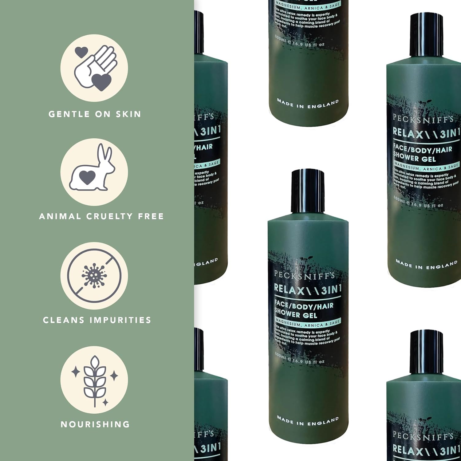 Pecksniff'S Relax Magnesium 3-In-1 Arnica & Sage Shower Gel | 500Ml /16.9 Fl Oz