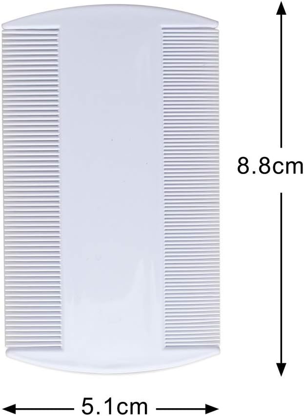 Specifications: Material: plastic Color: As the picture Size: 2*3.46 inch Features: 1.Made of high quality plastic material, durable and reusable 2.Fine comb teeth spacing on both sides that can be used on wet or dry on fine hai 3.Suitable for adults, children and pets for Head Lice Dectection Comb Kids Pet Flea. Package Include: 4 Pieces x Double Sided Nit Combs,Material:The Lice Combs are made of plastic material which is sturdy,Size:The Nit Comb Size 2*3.46 inch,Design:Fine comb teeth spacing on both sides that can be used wet or dry on fine hair, thick hair, and long hair,Feature: The Double Sided Nit Combs is extra fine on one side and slightly wider on the other,Application: They are used in Children and Adults hair for the removal of Nits, Lice, Fleas, and eggs