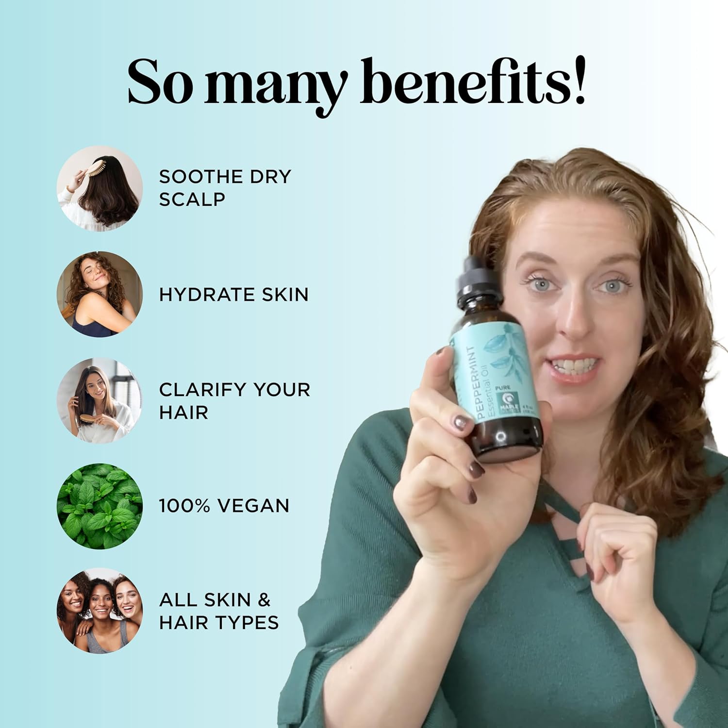 Peppermint Essential Oil For Diffuser Aromatherapy - 100% Pure Peppermint Oil For Hair Skin And Nails Plus Undiluted Refreshing Aromatherapy Essential Oil For Diffusers Baths And Topical Uses 4Oz