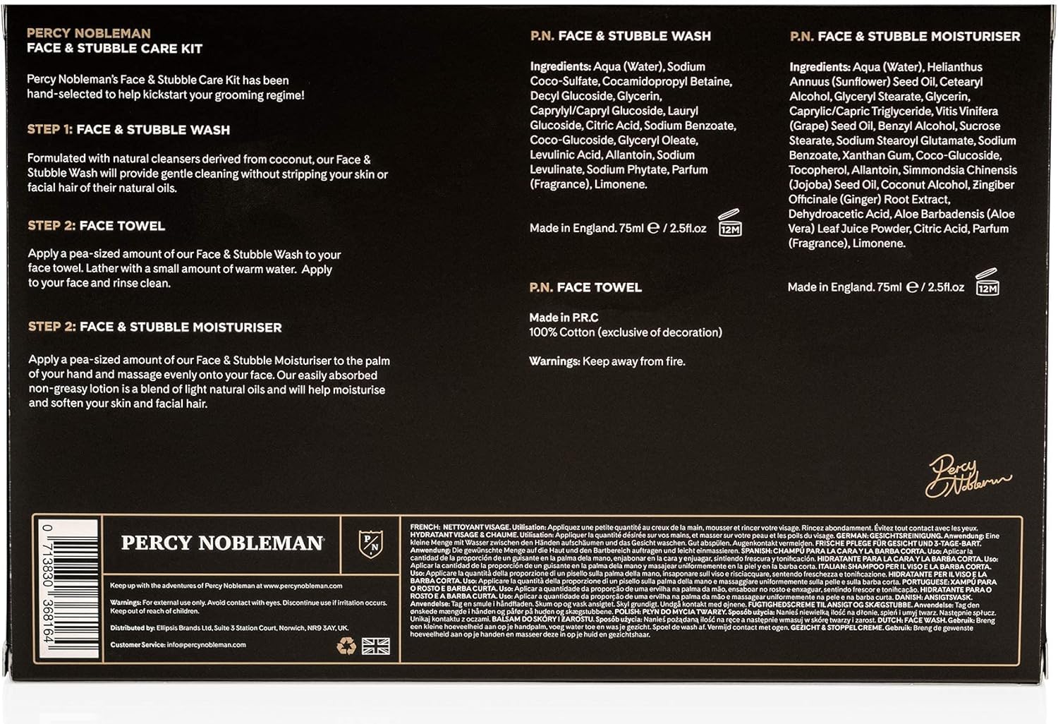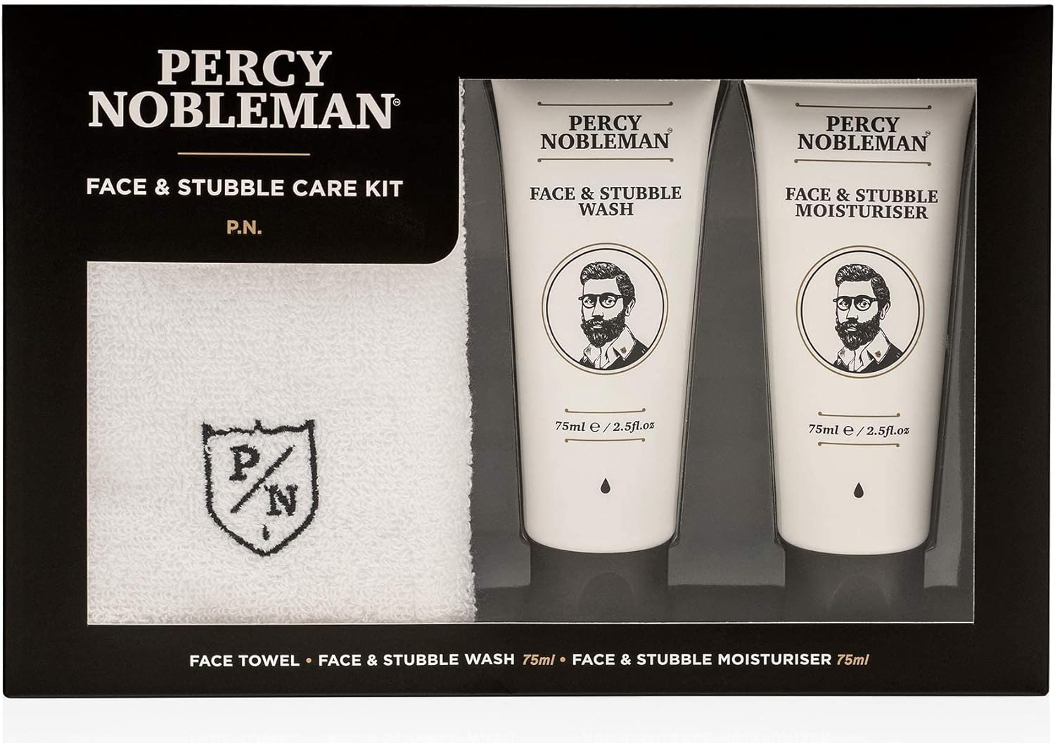 Percy Nobleman - Face & Stubble Care Kit By Percy Nobleman, A Men'S Gift Set For Skin Care. Moisturiser, Wash And Face Towel Kit