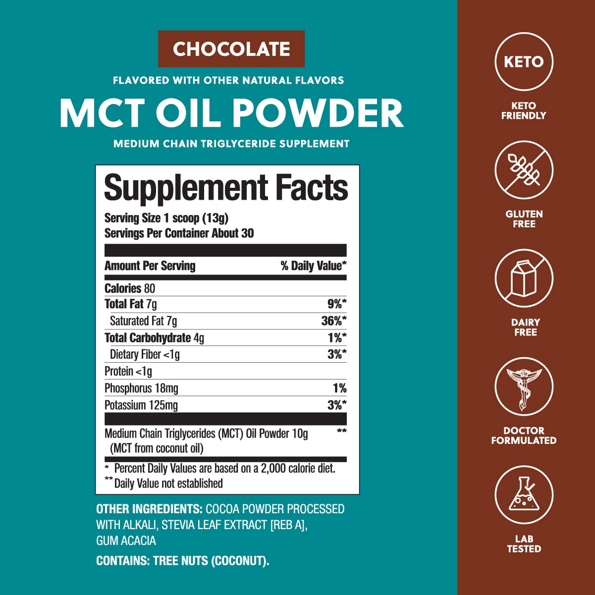 Perfect Keto 7G Mct Oil Powder, Medium Chain Triglycerides Supplement, Non Dairy Coffee Creamer For Keto Diet, Ketogenic Mct Oil Mix For Coffee, Smoothie, Protein Shakes, Chocolate, 30 Servings