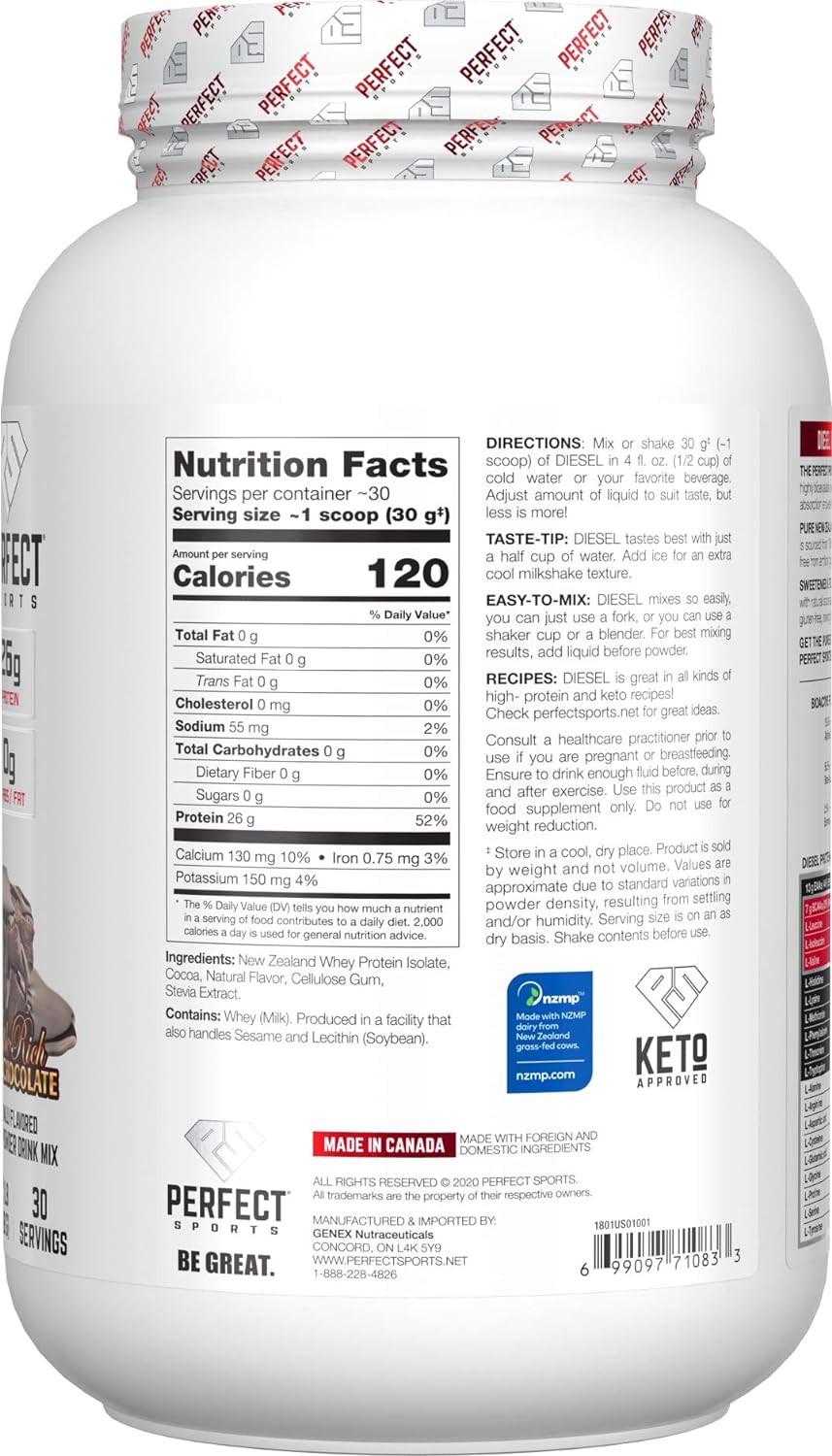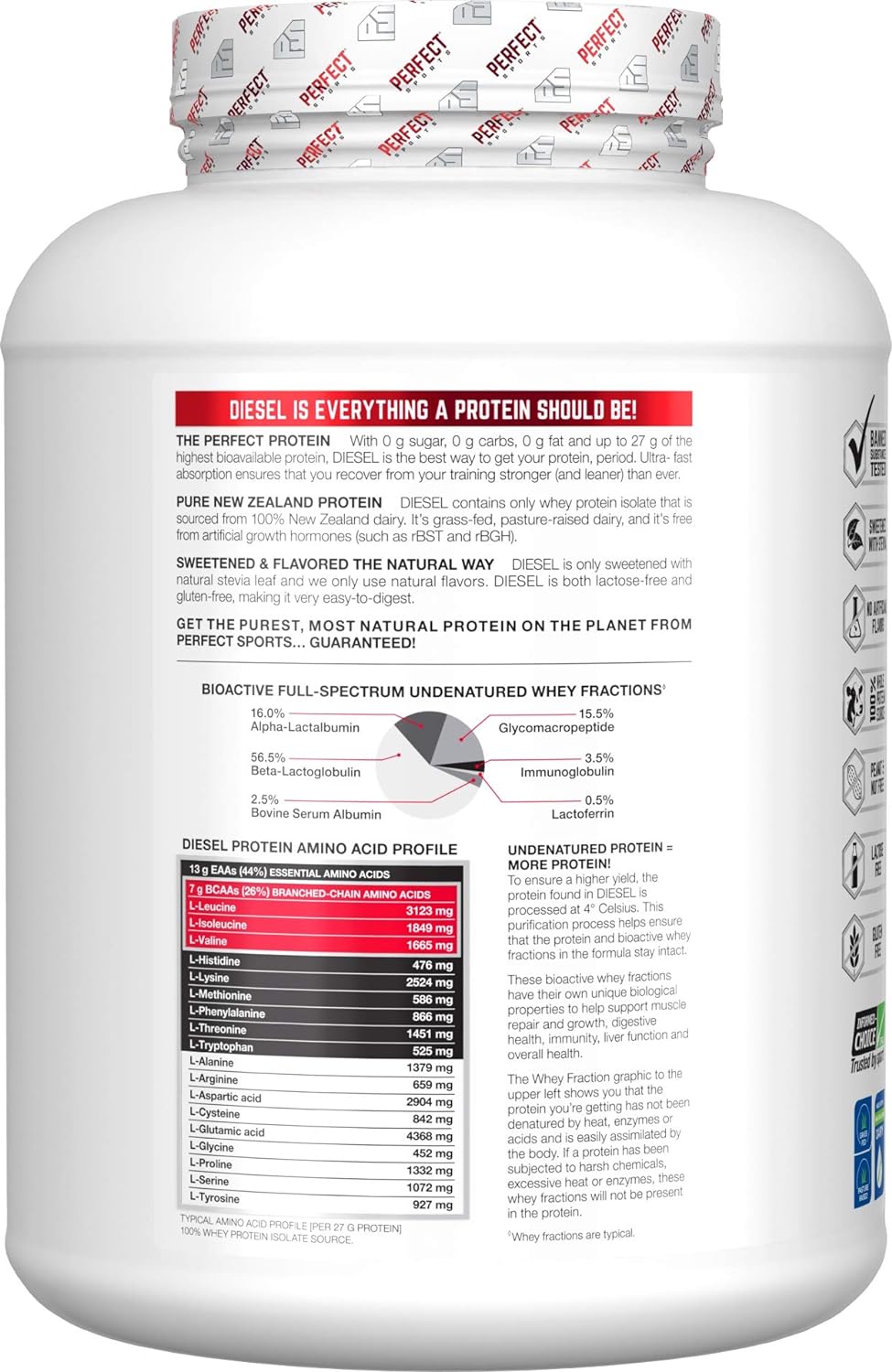 Perfect Sports, Diesel 100% New Zealand Whey Isolate, Grass-Fed & Past