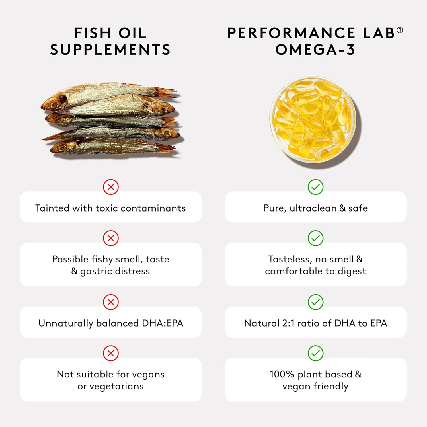 Performance Lab® Omega-3 Dietary Supplement From Algae, 90 Ct Pure, Clean And Premium Omega-3 Supplements, Potent Fatty Acid Carrageenan-Free Softgel, Plant-Based And Easy To Swallow, Made In Usa