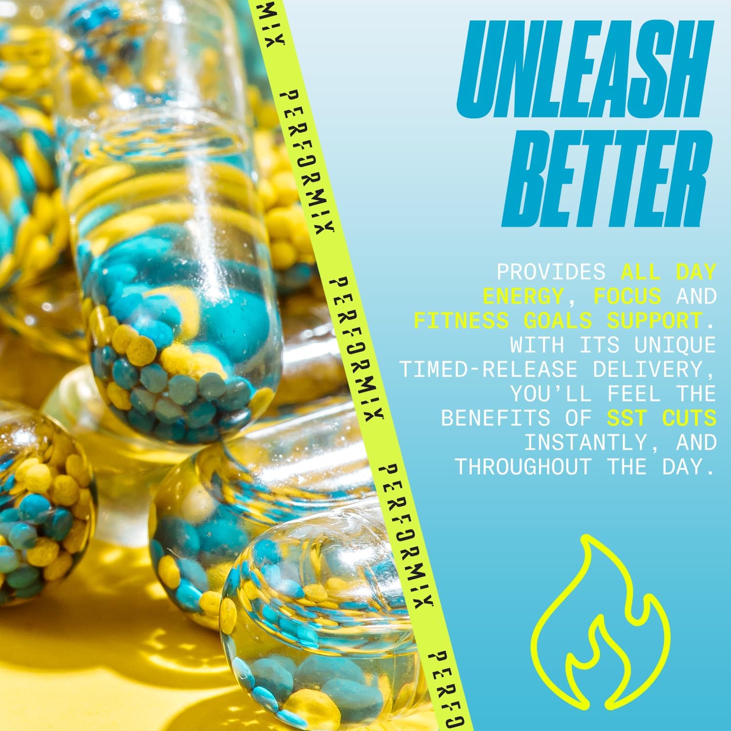 About this item Cutting-Edge Blend: Unleash the power of Performix SST Cuts, fueled by an advanced thermo-stimulant formula with CLA that ignites your metabolism, supporting your fitness goals while elevating energy levels. Optimize with Terra Intelligent Dosing: Tap into your potential with our potent blend of Caffeine, Zychrome & Teacrine, promoting a sculpted physique & enhanced metabolism. Enjoy an 8-hour timed release for quick energy, focus & sustained benefits - no crashes. Jitter-Free Energy for Peak Performance: Embrace each day with our energy-enhancing formula, providing clean and sustained energy for your active lifestyle—power through gym sessions, sports activities, fitness classes, and endurance training without the jitters or crash. Targeted Support: Powerful ingredients focus on stubborn zones, provide sustained energy, and aid appetite control. Experience enhanced support to reach your fitness goals effectively. Enhanced Mental Clarity: Harness your cognitive potential with SST Cuts! Elevate focus and clarity, supported by Sensoril Ashwagandha, promoting calmness and optimizing reaction time, keeping you dedicated and committed to your fitness journey. See more product details,Cutting-Edge Blend: Unleash the power of Performix SST Cuts, fueled by an advanced thermo-stimulant formula with CLA that ignites your metabolism, supporting your fitness goals while elevating energy levels,Optimize with Terra Intelligent Dosing: Tap into your potential with our potent blend of Caffeine, Zychrome & Teacrine, promoting a sculpted physique & enhanced metabolism. Enjoy an 8-hour timed release for quick energy, focus & sustained benefits - no crashes,Jitter-Free Energy for Peak Performance: Embrace each day with our energy-enhancing formula, providing clean and sustained energy for your active lifestyle—power through gym sessions, sports activities, fitness classes, and endurance training without the jitters or crash,Targeted Support: Powerful ingredients focus on stubborn zones, provide sustained energy, and aid appetite control. Experience enhanced support to reach your fitness goals effectively,Enhanced Mental Clarity: Harness your cognitive potential with SST Cuts! Elevate focus and clarity, supported by Sensoril Ashwagandha, promoting calmness and optimizing reaction time, keeping you dedicated and committed to your fitness journey