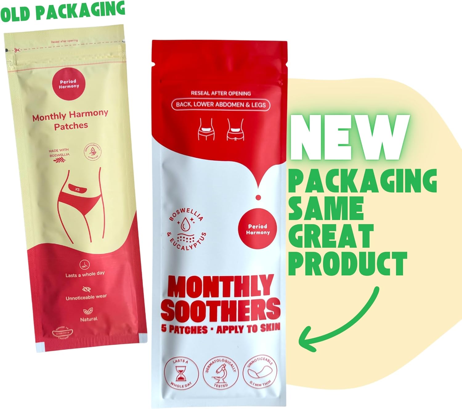 Period Harmony Pain Relief Patches (5 Per Pack) - Developed With Doctors, Natural Patches For Back, Joint, Muscle & Period Pain, Anti Inflammatory Boswellia, Pcos, Fibroids & Endometriosis Pain Relief