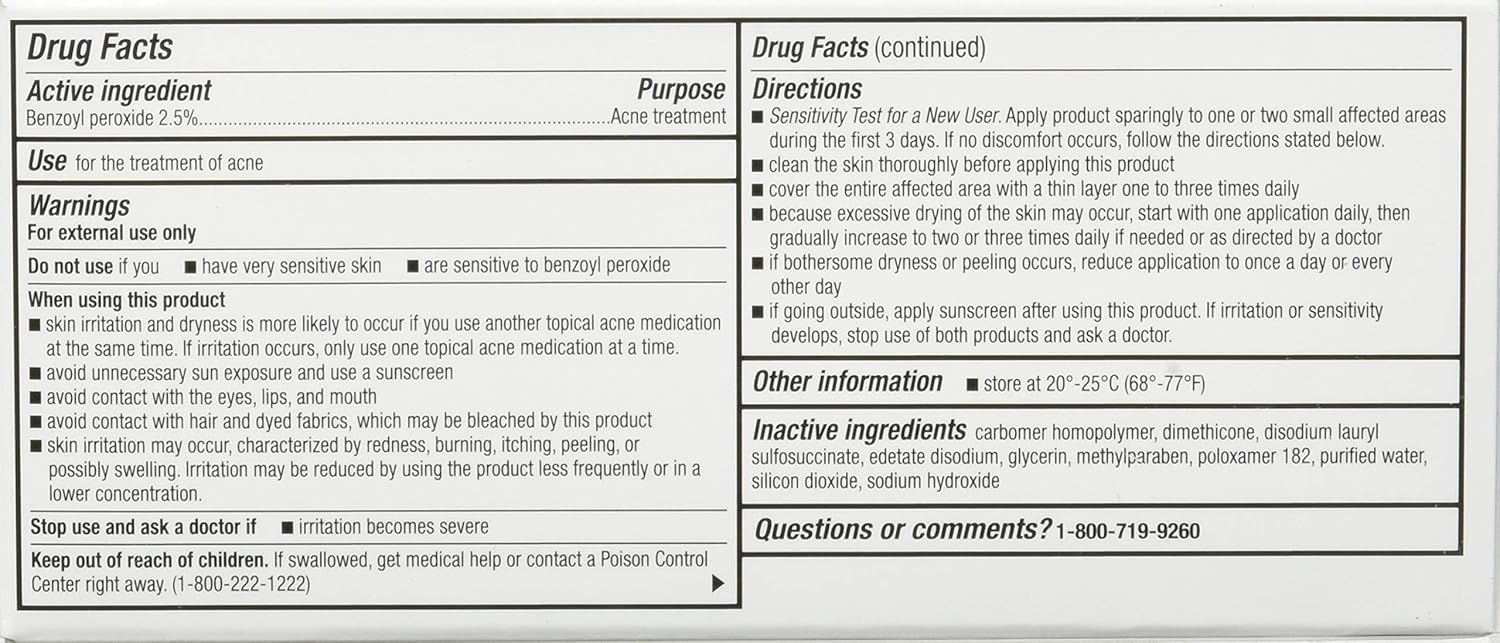 Perrigo 2.5% Benzoyl Peroxide Acne Treatment Gel 60Gm Tube