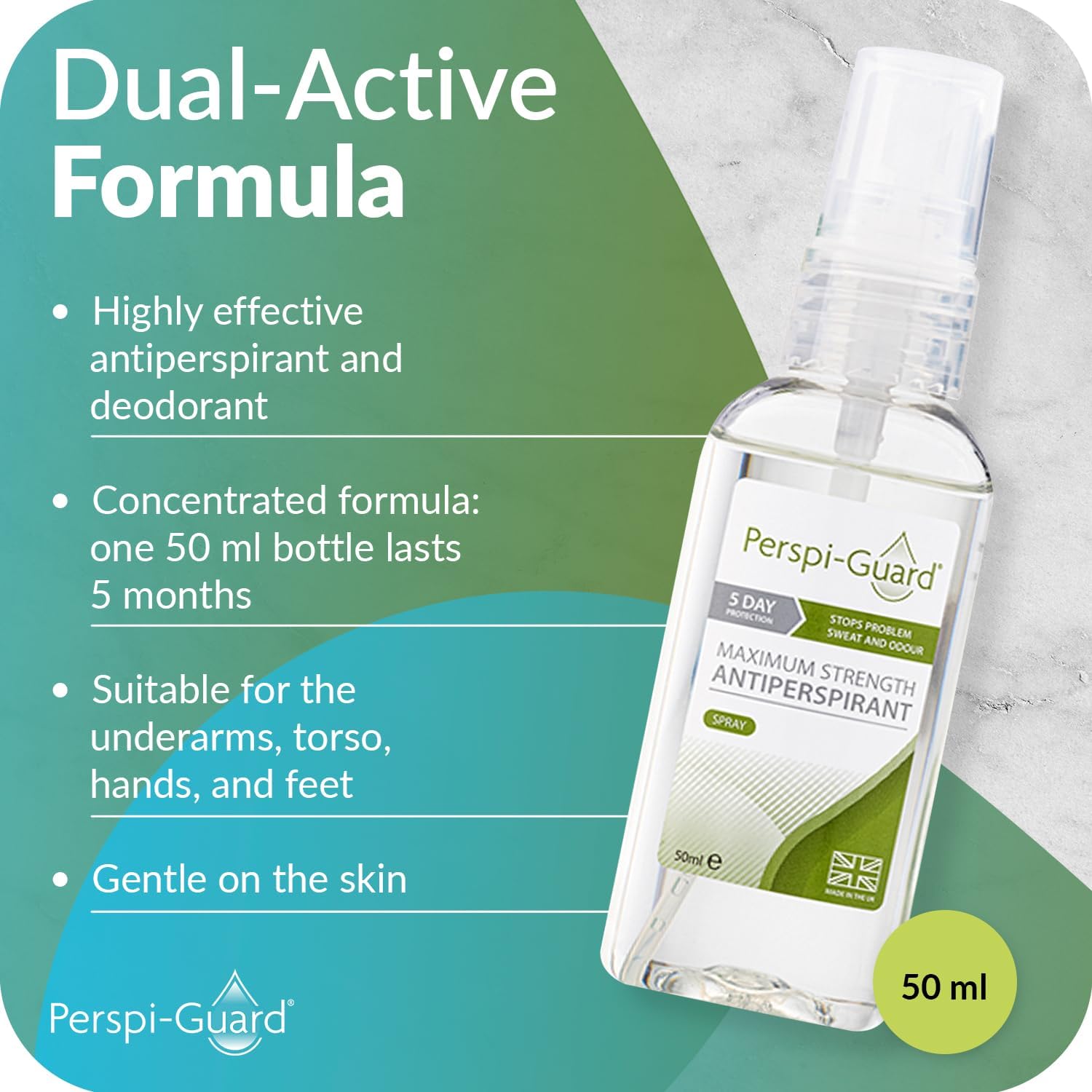 Perspi-Guard Maximum Strength Antiperspirant Spray 50 Ml, 2-Pack, Strong Deodorant For Excessive Sweating & Hyperhidrosis, Anti Sweat Spray, Unscented