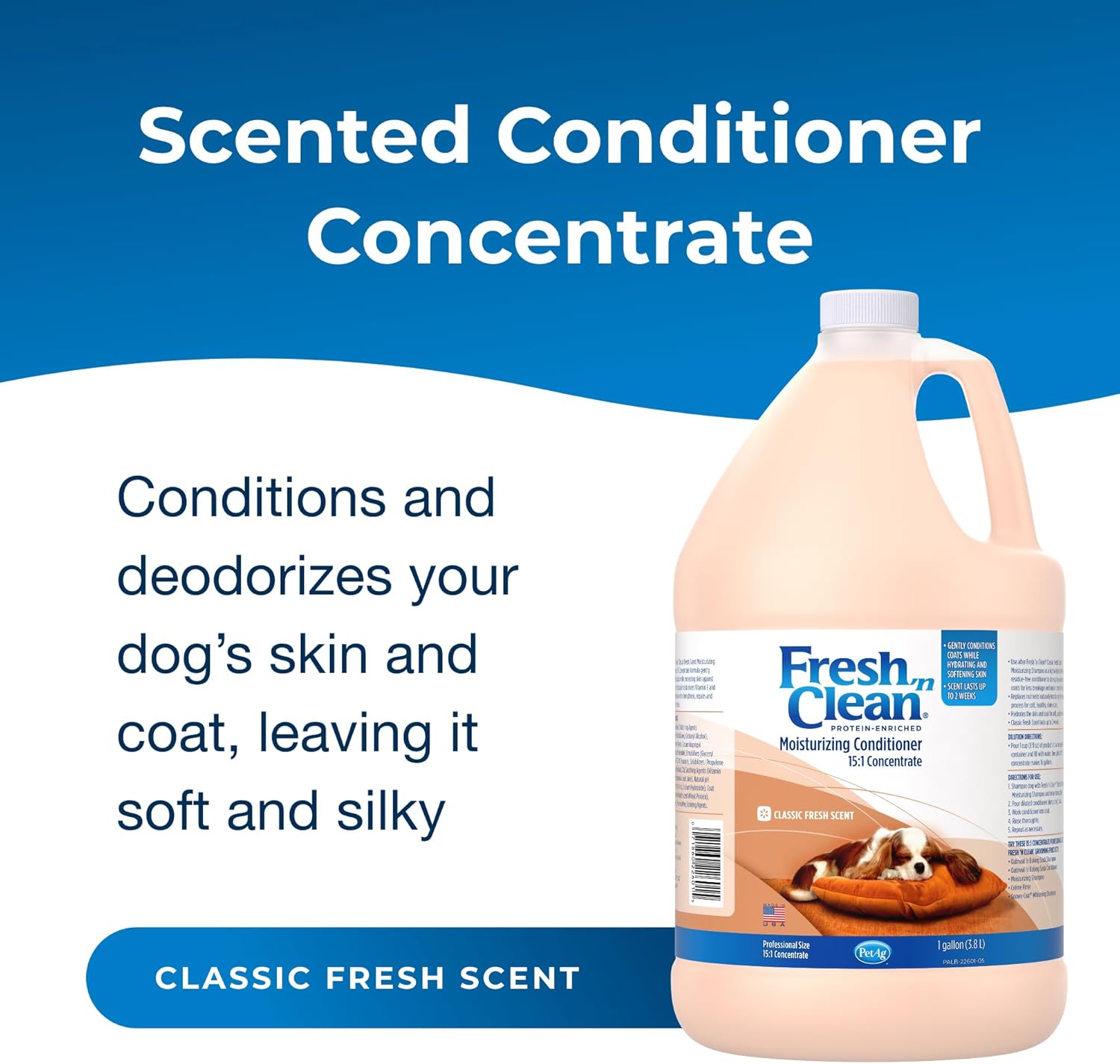 Pet-Ag Fresh ’N Clean Conditioner, Classic Fresh Scent (15:1 Concentrate) - 1 Gallon - Moisturizes With Vitamin E & Aloe Vera - Strengthens & Repairs Coats - Soap Free