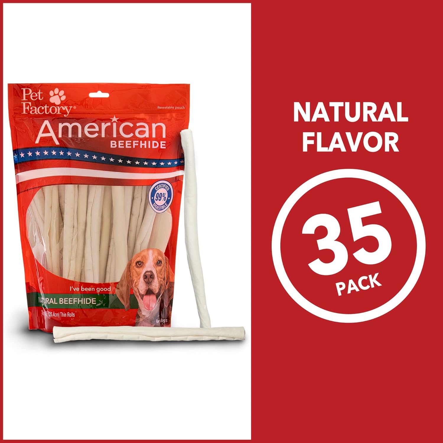 Pet Factory American Beefhide 10" Thin Rolls Dog Chew Treats - Natural Flavor, 35 Count/1 Pack