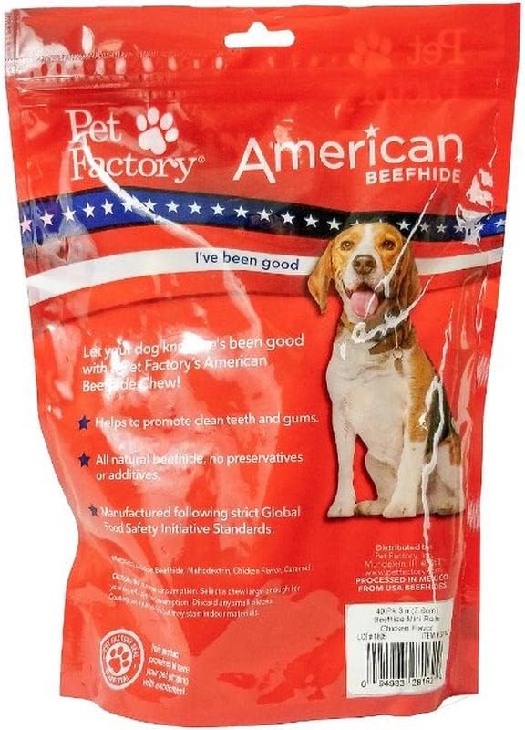 Pet Factory’S Natural Handmade Mini Rolls Are Made From Thick Premium American Beefhide To Satisfy Your Dog’S Urge To Chew. Your Dog Will Enjoy The Mouthwatering Chicken Flavor Of Our Bones. These Dog Treats Are Manufactured Following Strict Global Food Safety Initiative Standards. Disclaimer: Meant For Intermittent Usage. Select A Chew Large Enough For Your Dog And Supervise Consumption. Discard Any Small Pieces. Coatings Are Water-Soluble But May Stain Indoor Materials