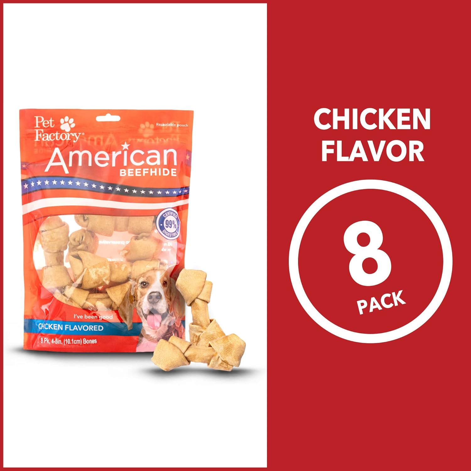 Pet Factory American Beefhide 4-5" Knotted Bones Dog Chew Treats - Chicken Flavor, 8 Count/1 Pack