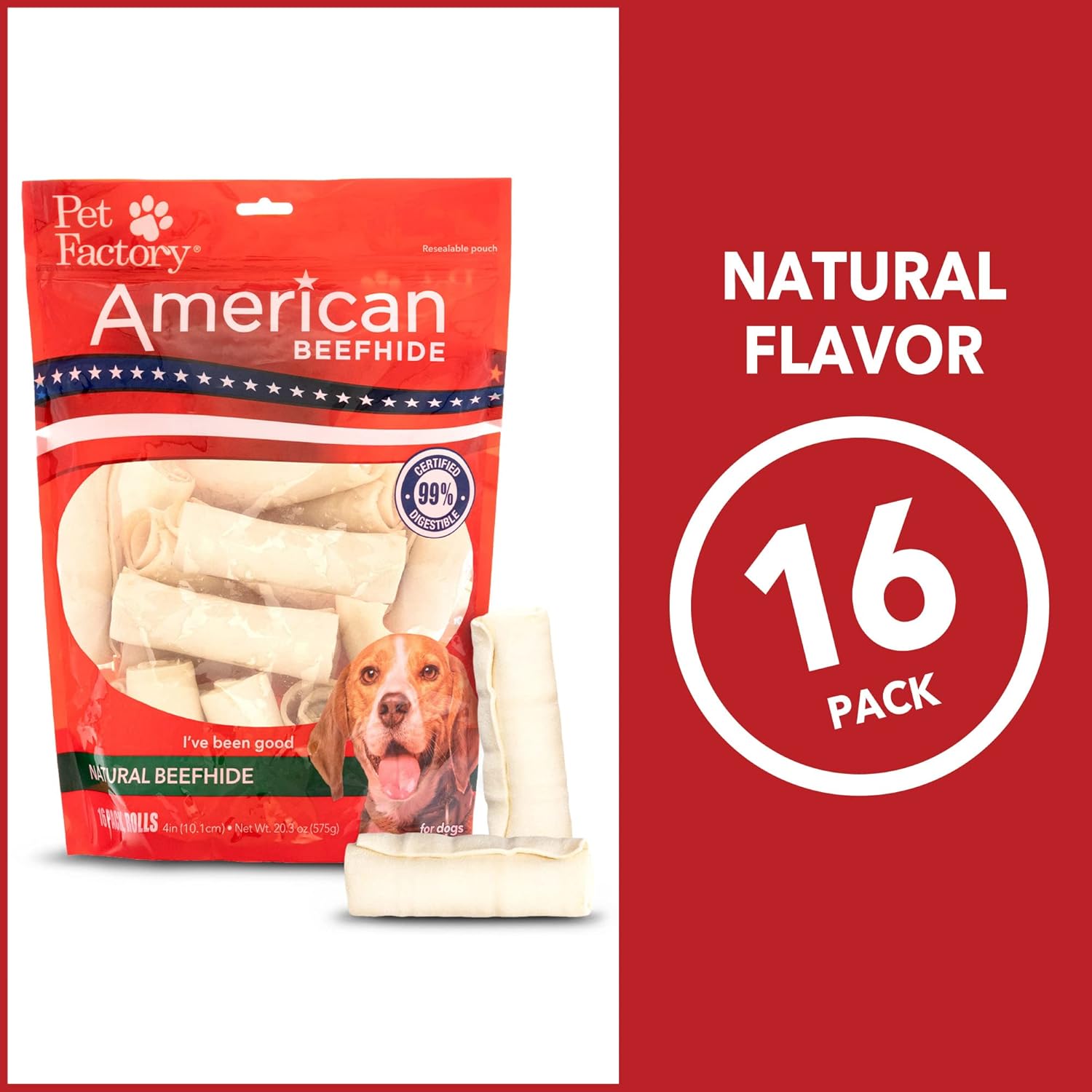 Pet Factory American Beefhide 4" Rolls Dog Chew Treats - Natural Flavor, 16 Count/1 Pack
