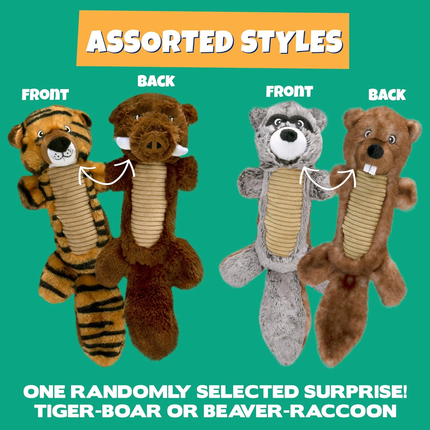 Pet Factory Shake & Squeak Flipsterz Plush Dog Toy, Randomly Selected - Tiger-Boar Or Beaver-Raccoon, One Size