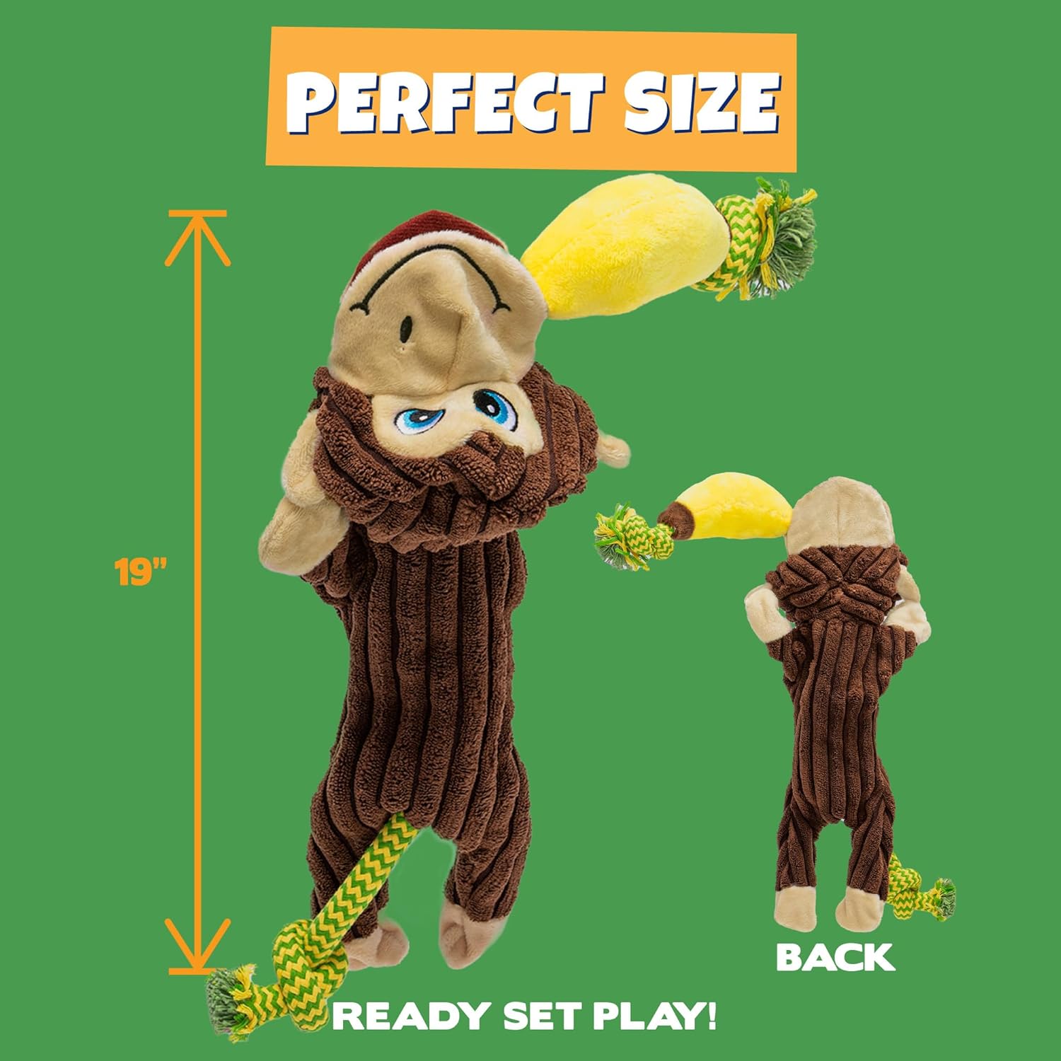 INTERACTIVE PLAY: The long plush body with the tough tug rope make Tug & Chump the perfect toys for interactive play between dogs, or pet and owner; tug games are a great and super fun way to bond with your dog