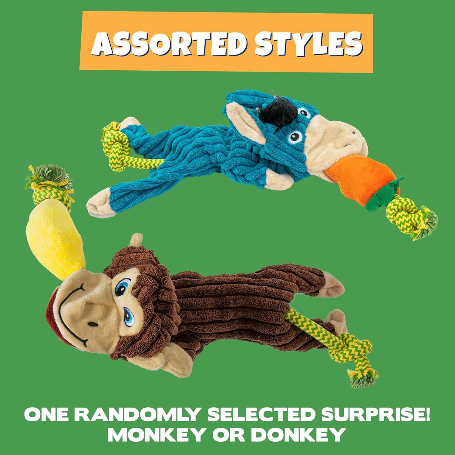 Pet Factory Tug & Chomp Squeaky Plush Dog Toy, Randomly Selected - Monkey Or Donkey, One Size