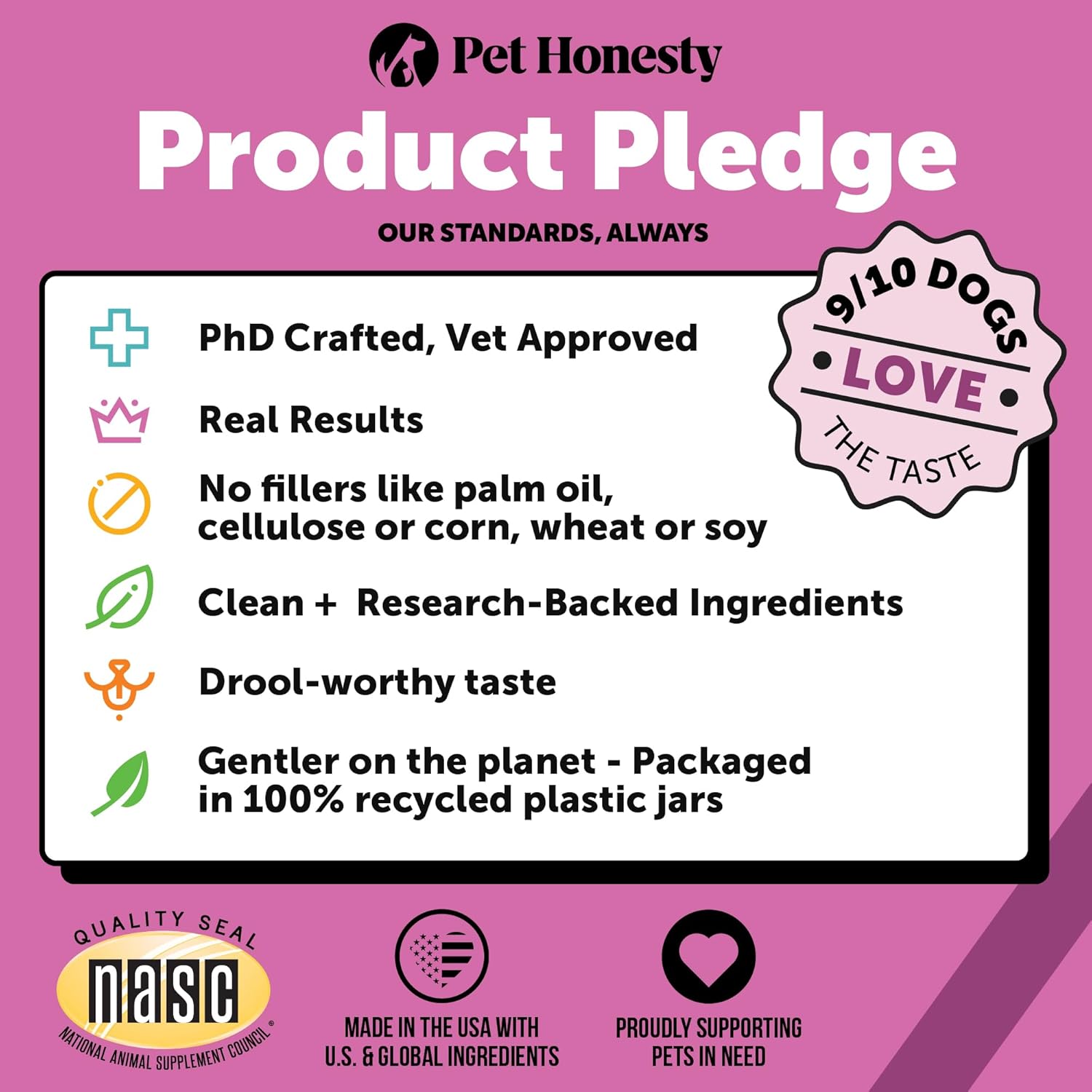 Manufactured In The U.S.A. | Nasc Member Company: All Pet Honesty Products Are Made In The Us With Us And Globally Sourced Ingredients And Are Produced In A Gmp-Compliant Facility That Meets The Highest Safety Standards, So You Can Rest Assured You'Re Giving Your Pet The Best Quality Product Possible! Pet Honesty Is Also A Nasc Member Company, Meaning It Has Met The Highest Quality And Compliance Standards For Pet Supplements