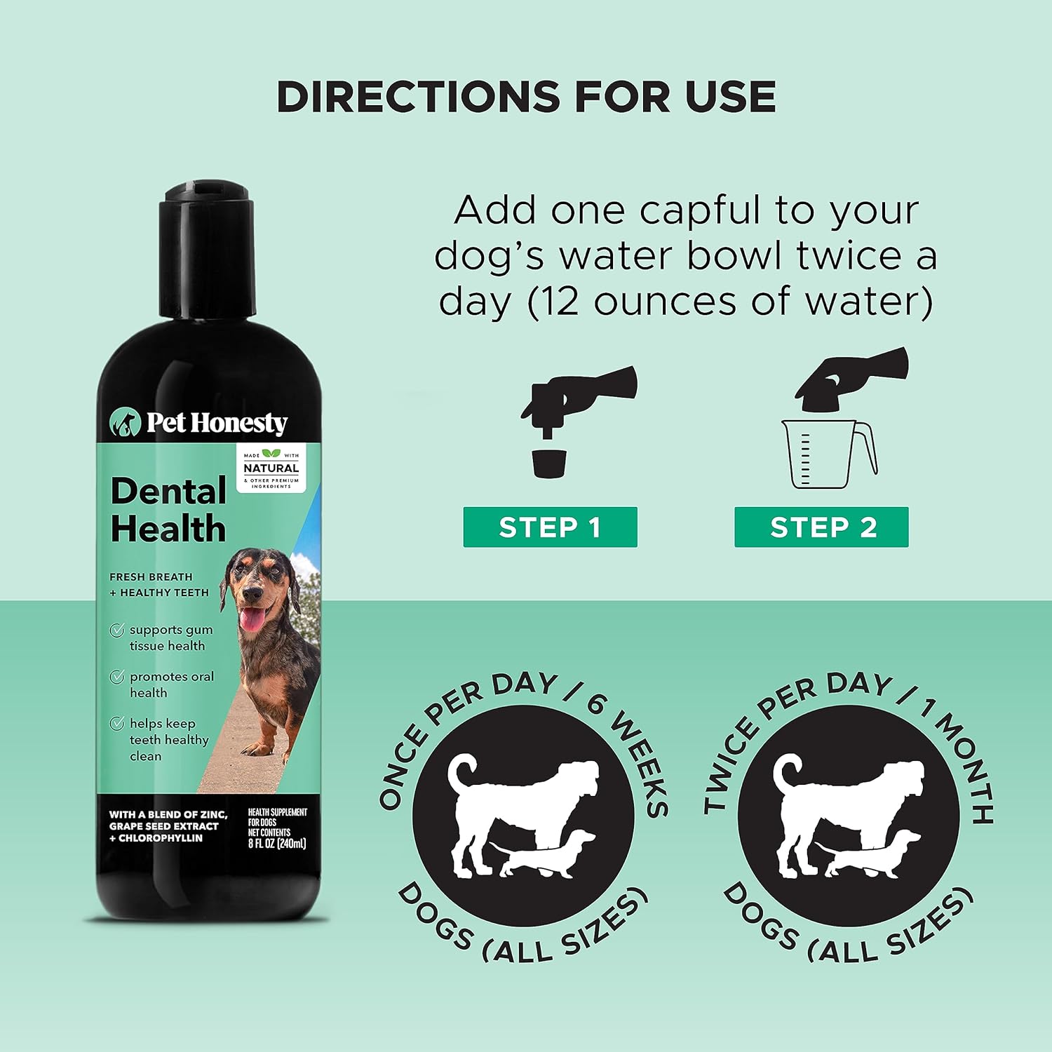 Pet Honesty Oral Hygiene Dental Water Additive | Dog Mouthwash + Teeth Cleaning | Keeps Teeth + Gums Clean | Freshens Breath + Targets Plaque + Tartar - 8 Oz