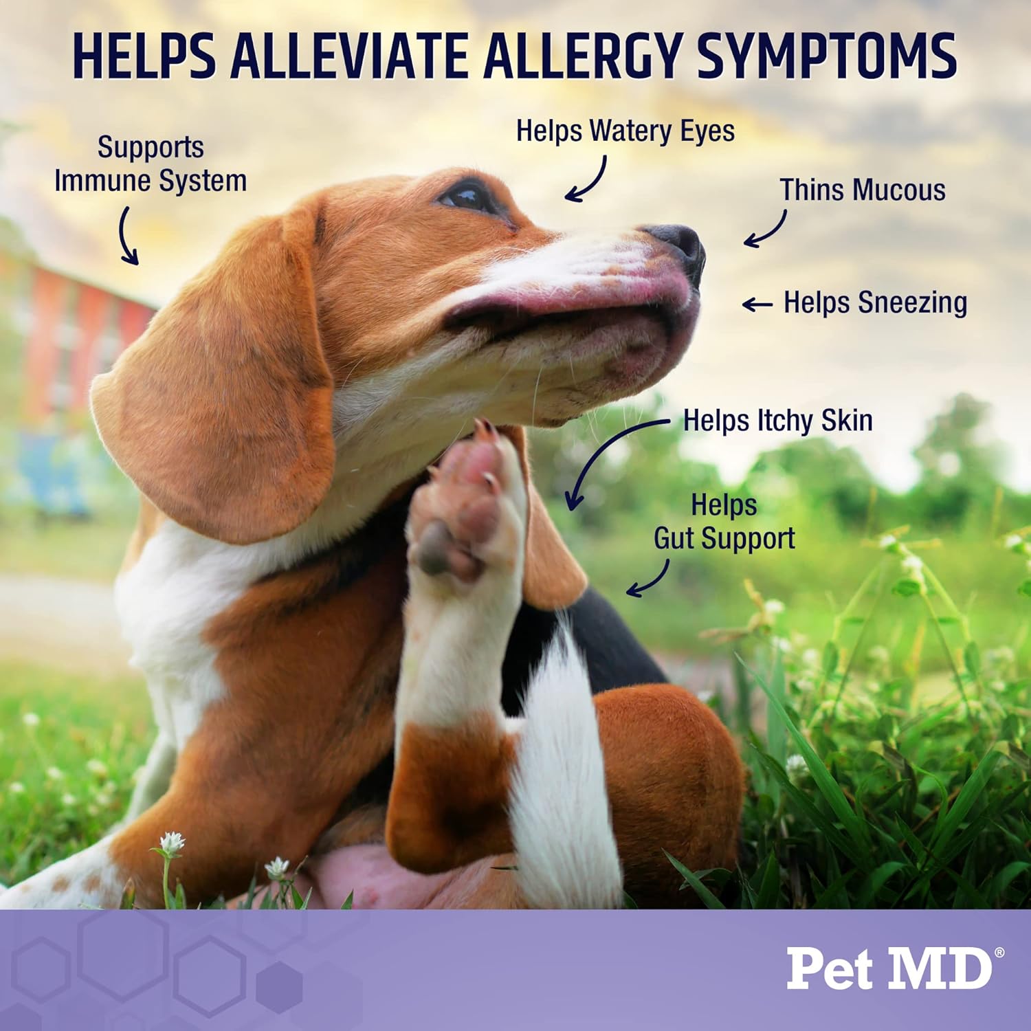 About Pet Md Allergy Aid Chews For Dogs Seasonal And Year-Round Allergies Can Affect Your Dog'S Respiratory Health If Left Unaddressed. Pet Md Allergy Aid Chews Are Packed With Unique And Wholesome Nutraceuticals To Support Immunity, Respiratory Function, And Allergy Response. Key Ingredients Quercetin And Bromelain Are Enzymes That Break Down Proteins, Helping Reduce Excess Mucus And Alleviate Watery Eyes Associated With Dog Allergies. Turmeric Root And Grape Seed Extract Help Reduce Inflammation In The Throat, Nose, And Sinuses Which May Cause Coughing, Sneezing, And Runny Nose. For Allergy Skin Health For Dogs, Nourishing Fish Oil Promotes Skin Hydration And Helps Provide Itchy Skin Relief For Dog. Respiratory Support Is Essential For Dogs Because This System Is Only For Breathing But Also Body Temperature Regulation. Dogs Pant To Cool Down, Therefore An Underperforming Respiratory System Could Correlate To Two-Fold Health Concerns. Thus, Allergy Support For Dogs Is Critical Year-Round And Especially During Allergy Season. For Effective And Natural Allergy Relief, Choose Pet Md Allergy Aid For Dogs