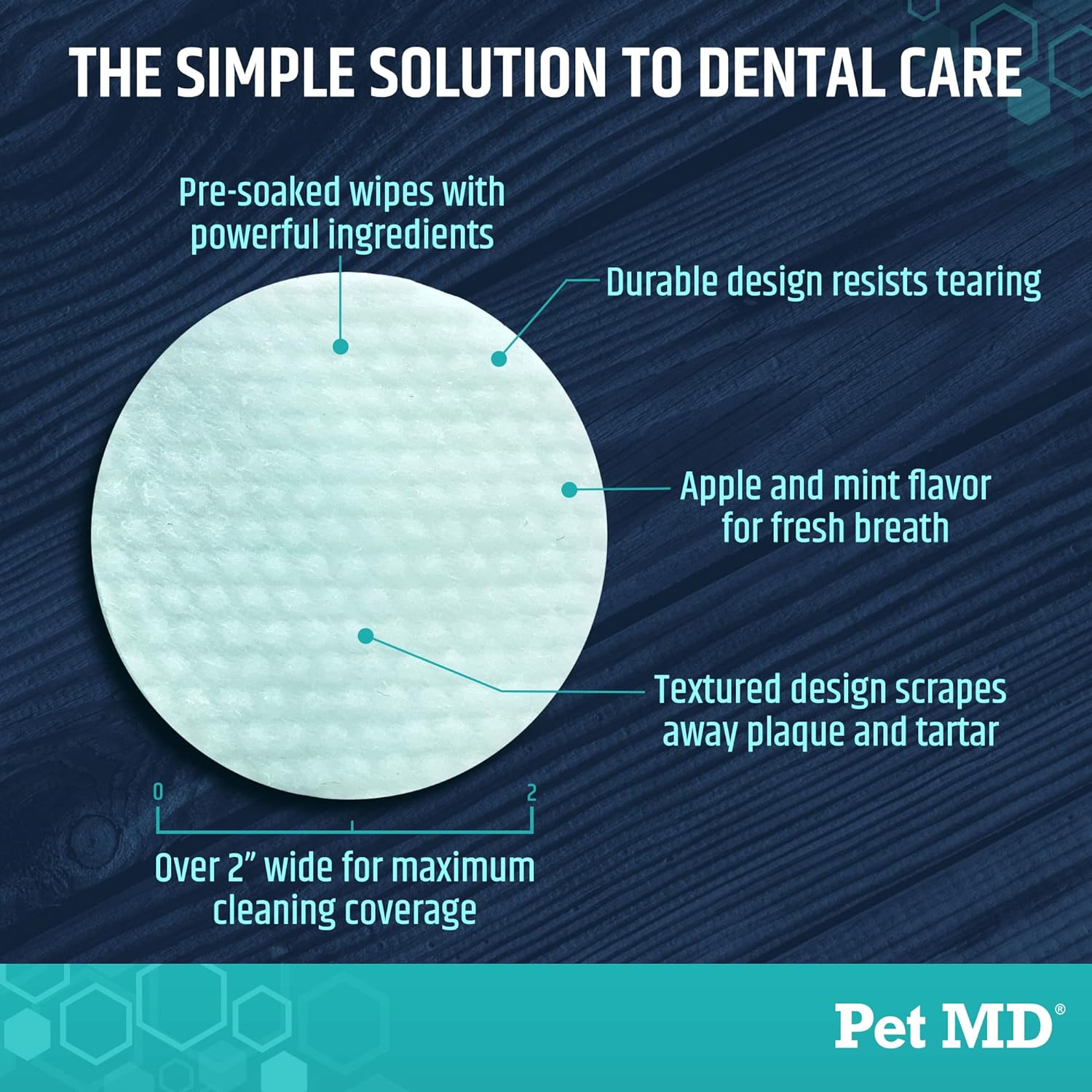 Pet Md Dental Wipes Makes Dental Care Easy. These Specially Textured Pads Help Remove Debris, Plaque, And Tartar And Leave Your Pet’S Teeth Clean, Polished, And Smelling Fresh! Always Use Care When Working In Or Around Pet’S Mouth To Avoid Biting Or Dog Swallowing Wipe